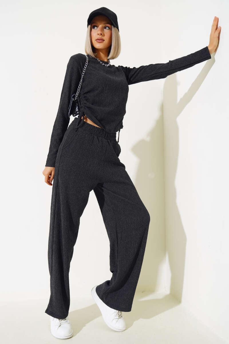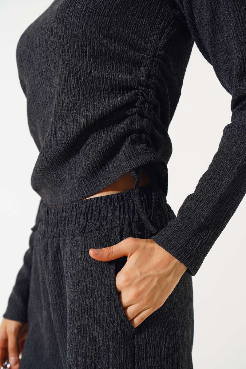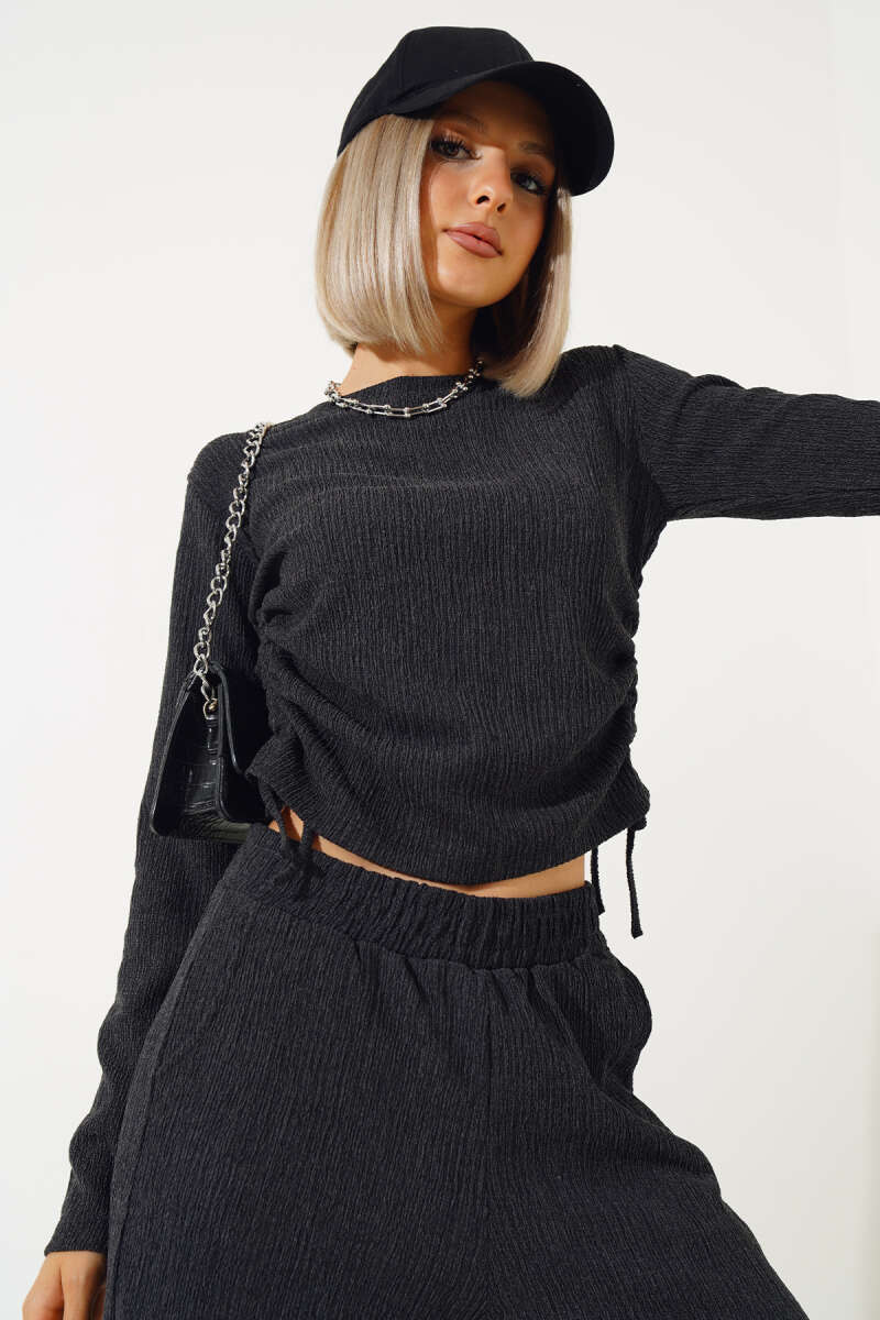 Önden Düğme Detaylı İp Bağcıklı İkili Takım Lacivert