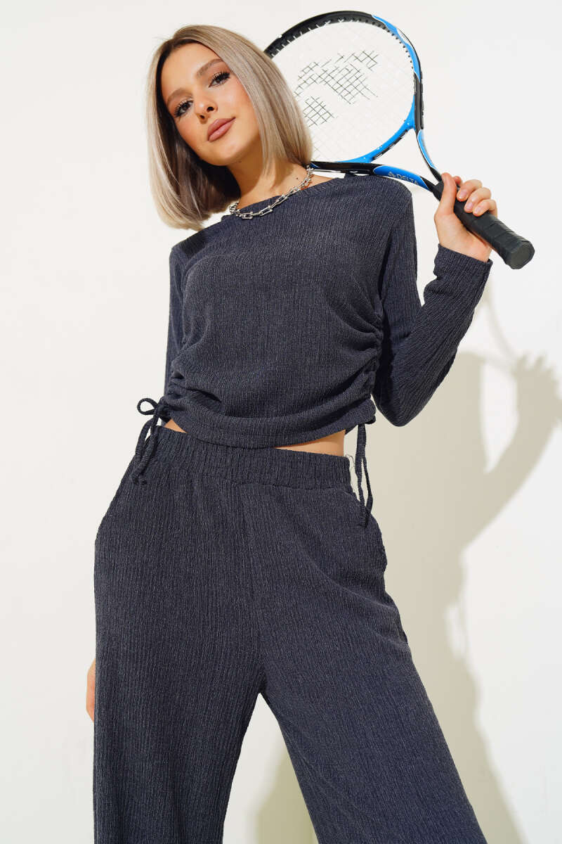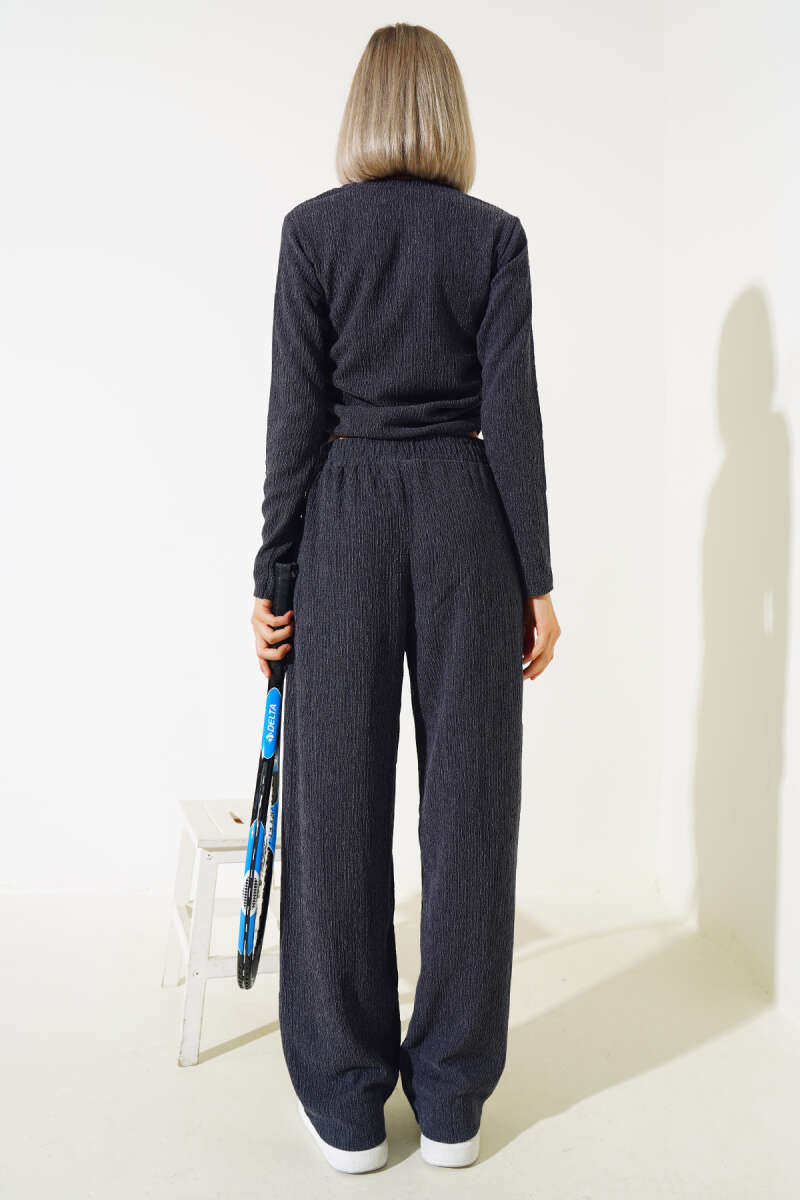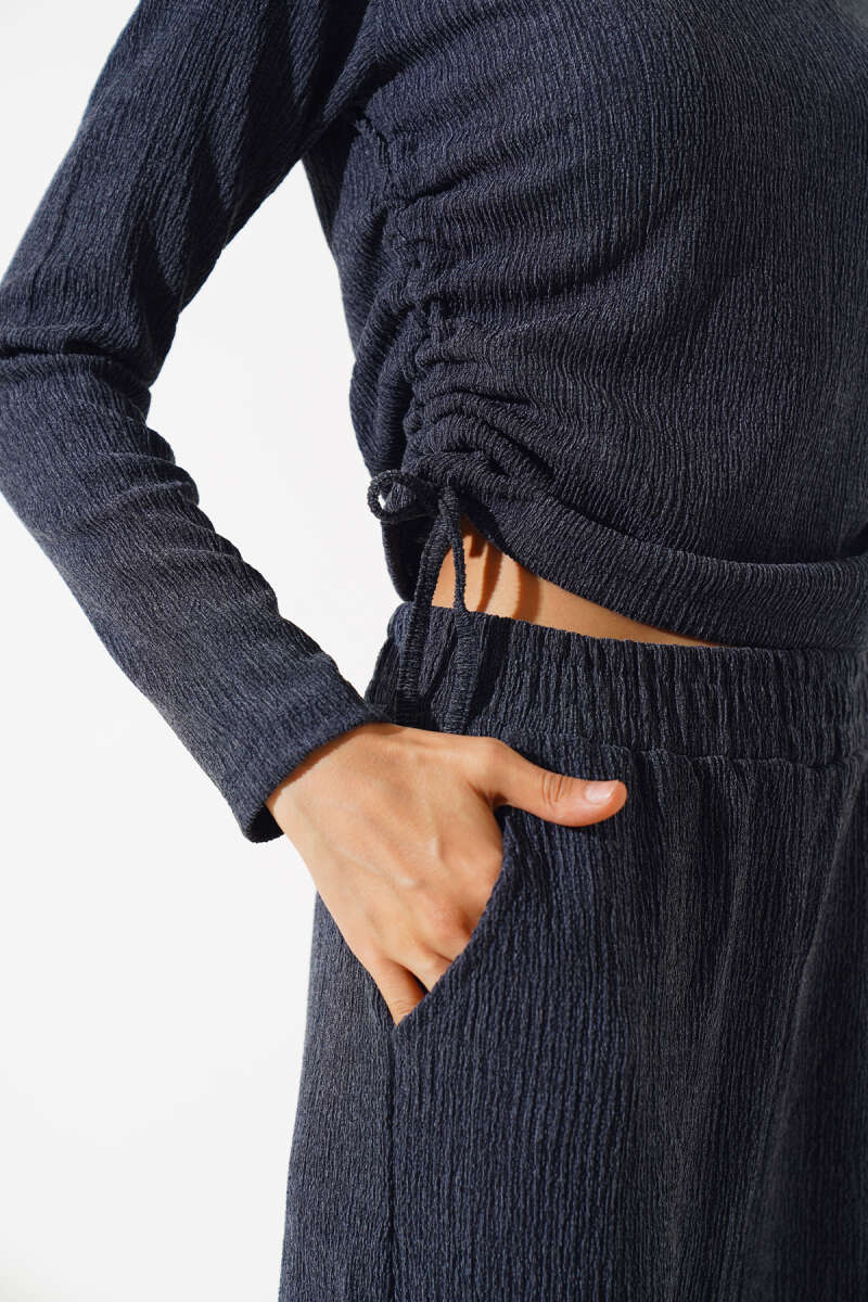 Bel Çımalı Dar Paça Kumaş Pantolon Siyah