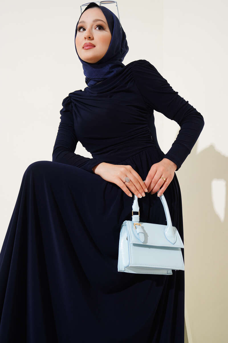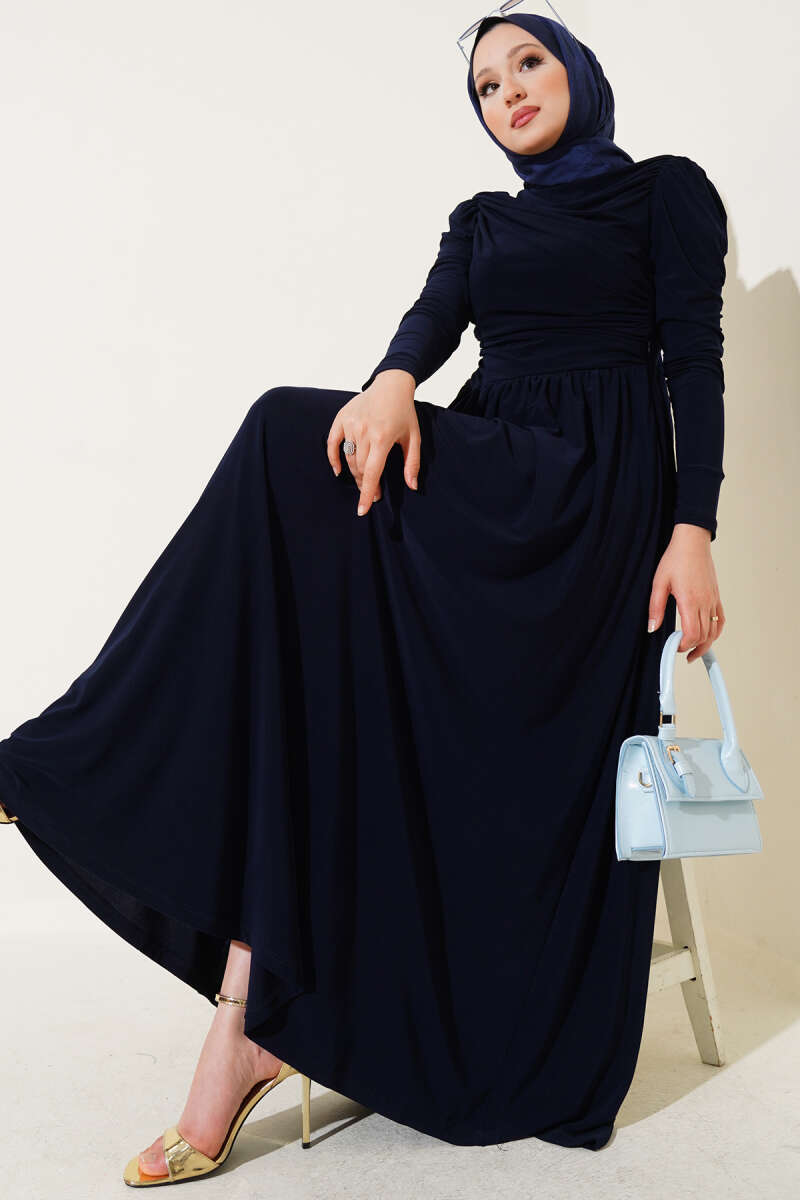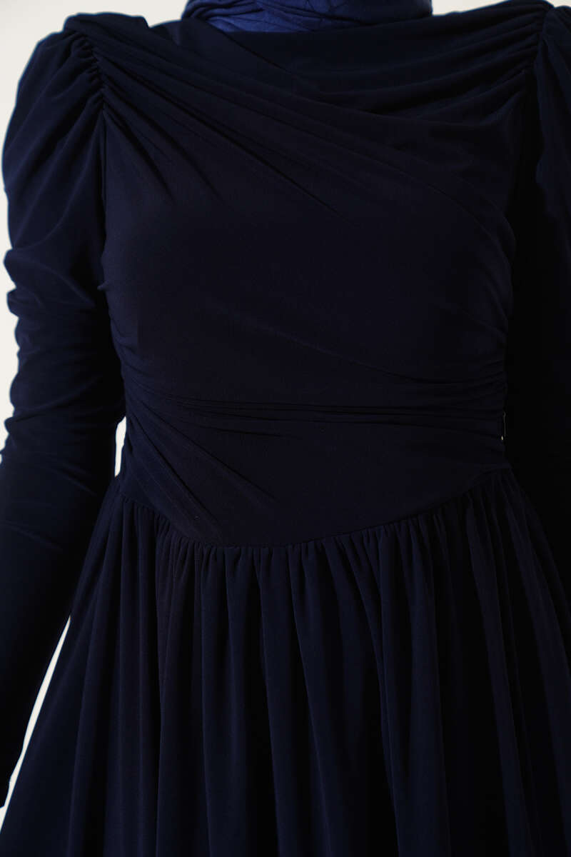 Scuba Pens Detaylı Kemerli Elbise Lacivert