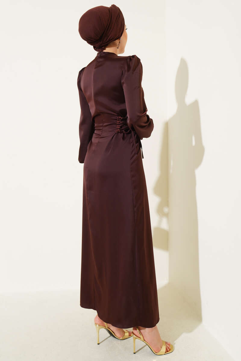 Gül Detaylı Pelerinli Abiye Elbise Haki