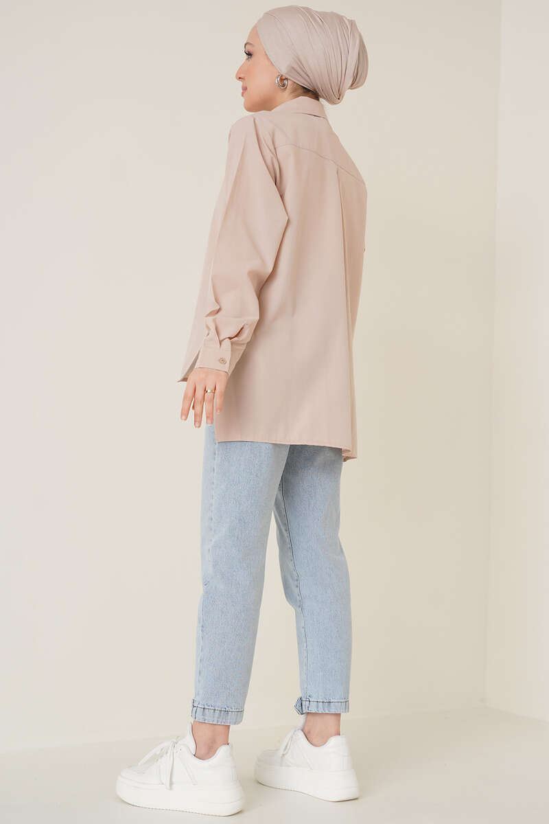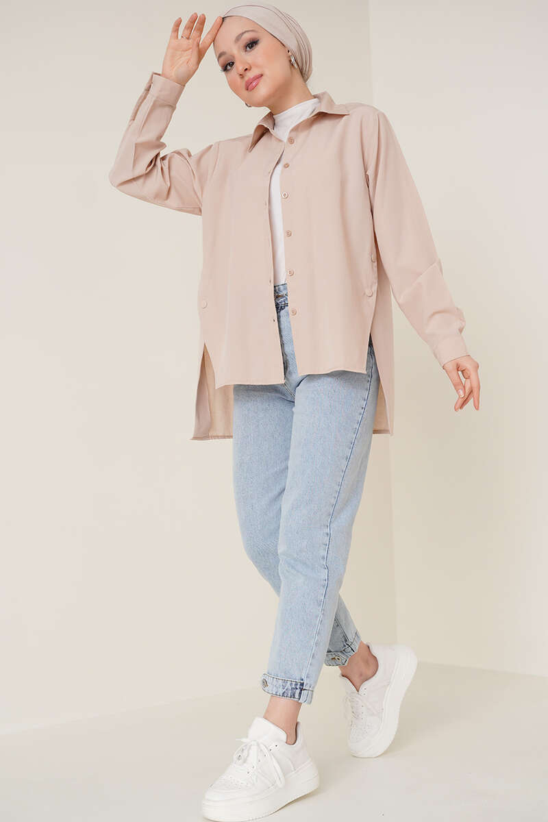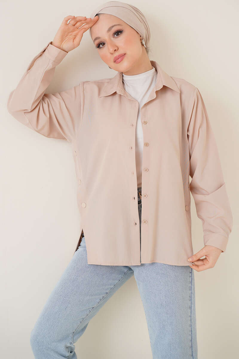 Yanları Çıt Çıt Düğmeli Gömlek Bej