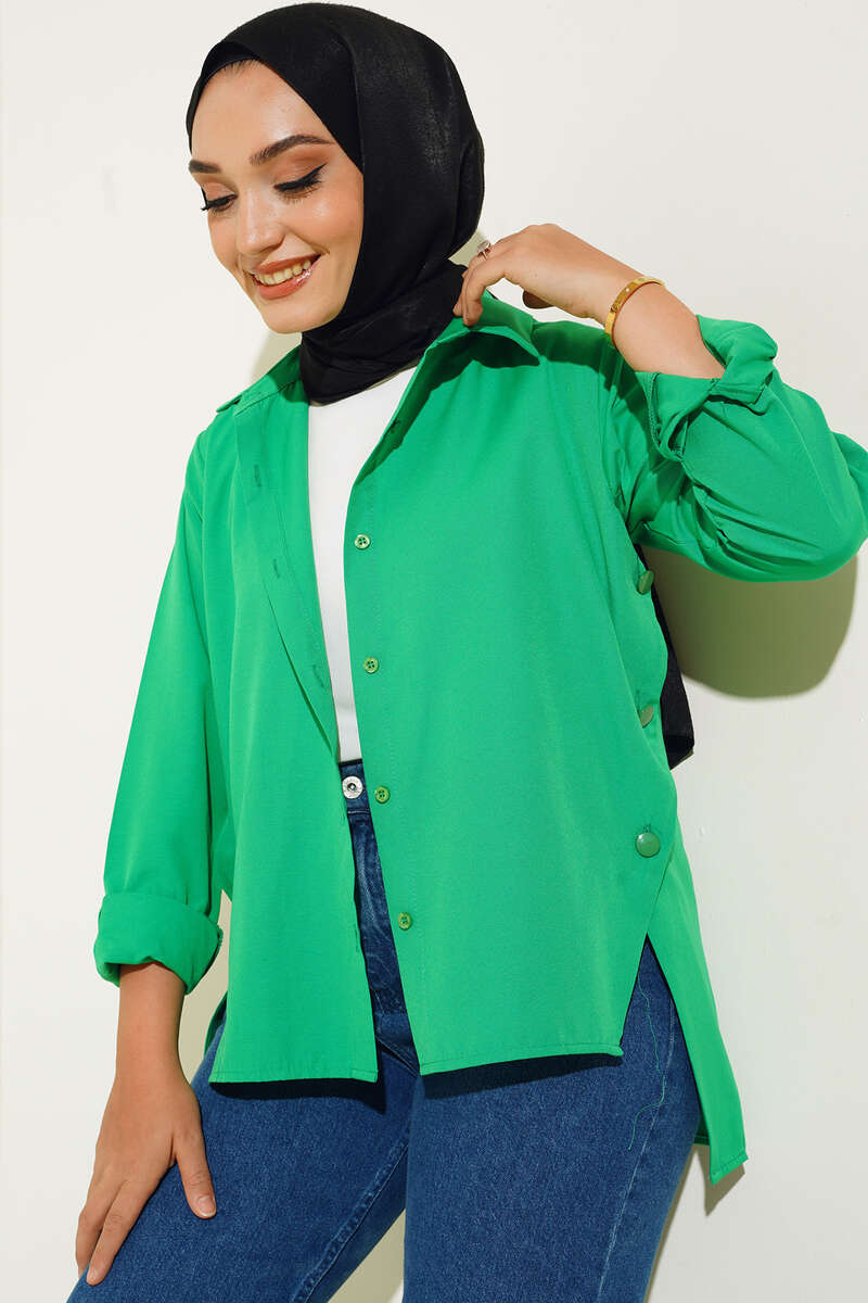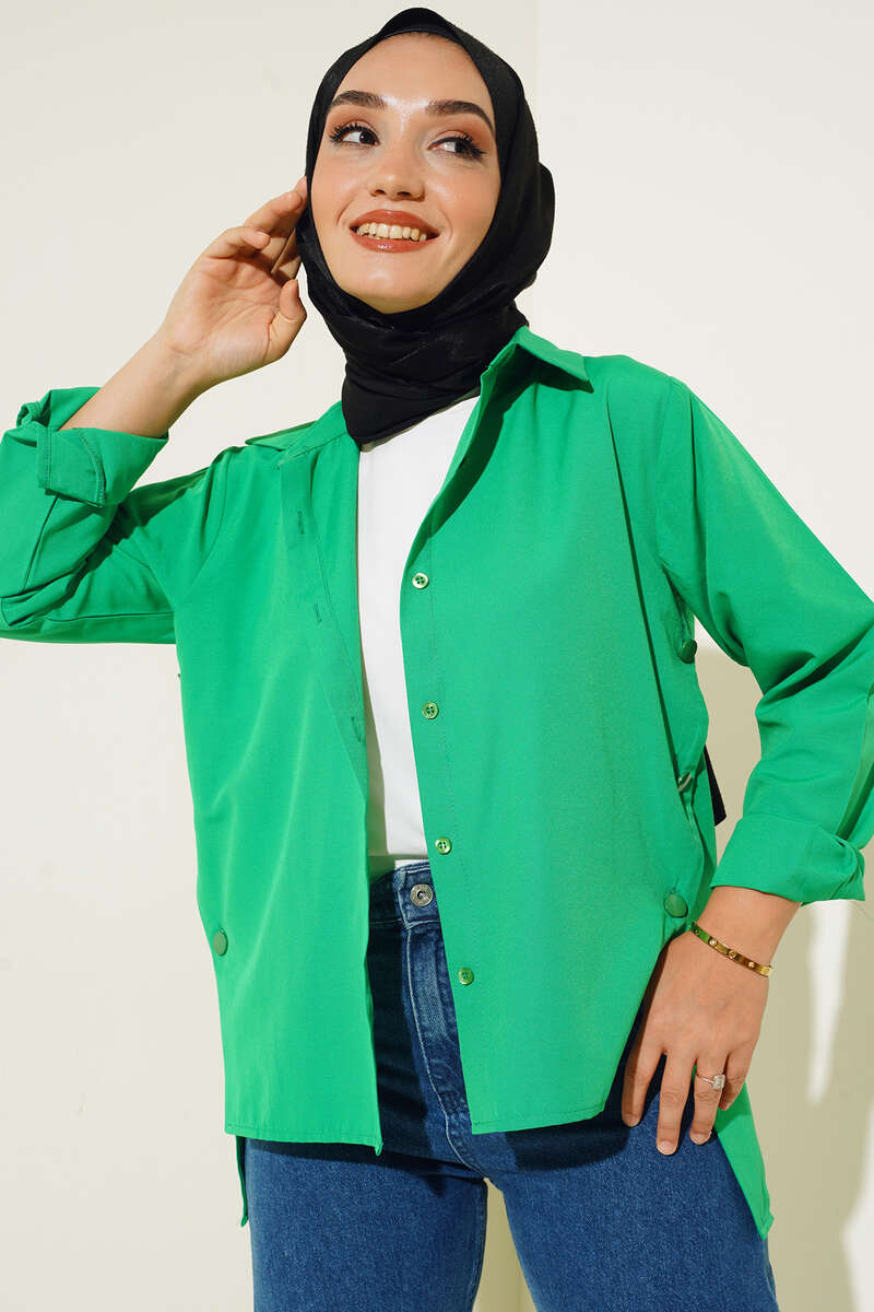 Yeni sezon gömleğimiz harika görünümüyle sizler için geldi. Gömleğimizin yanları çıt çıt düğmelidir. Önü ve bilekleri düğmelidir. Arkası uzundur. Oldukça rahattır. Her kıyafetinizle rahatlıkla kombin yapabilirsiniz. Farklı renk seçenekleri mevcuttur.