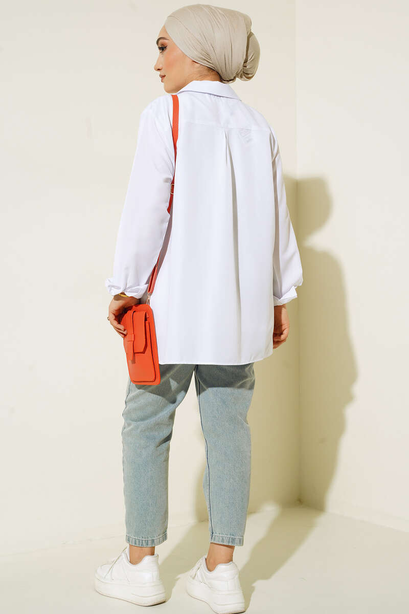 Yanları Çıt Çıt Düğmeli Gömlek Beyaz