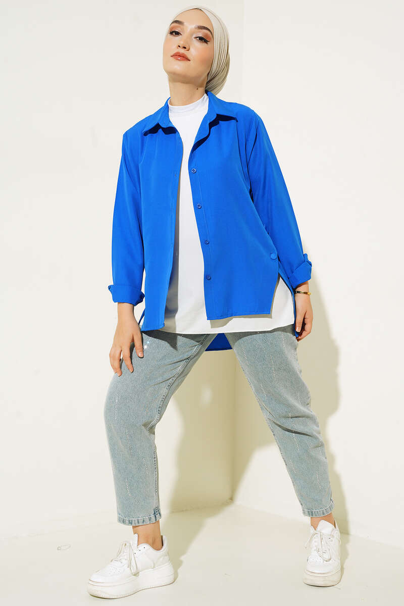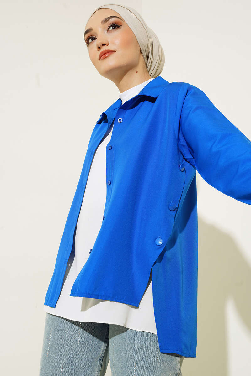 Yanları Çıt Çıt Düğmeli Gömlek Saks