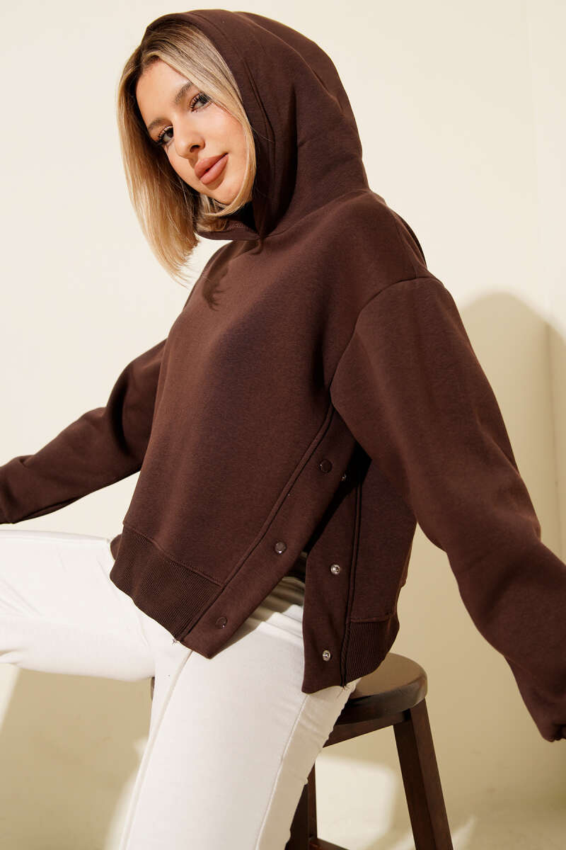 Yanları Çıtçıtlı Şardonlu Sweatshirt Mürdüm