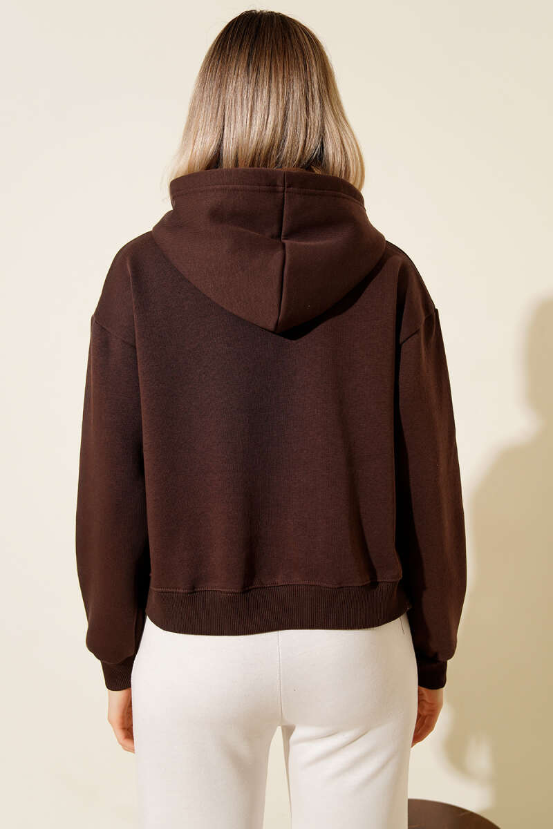 Biye Detaylı Baskılı Üç İplik Sweatshirt Mürdüm