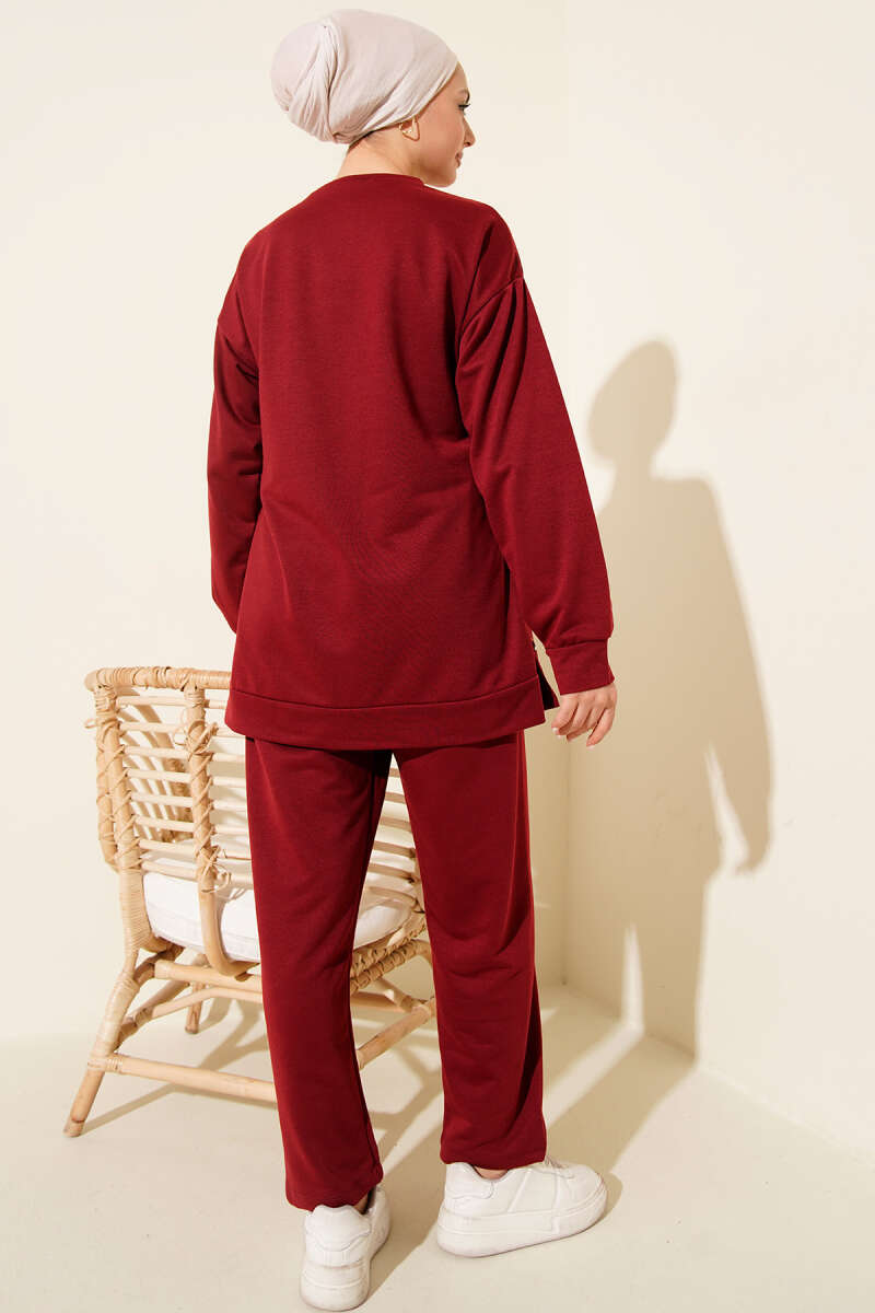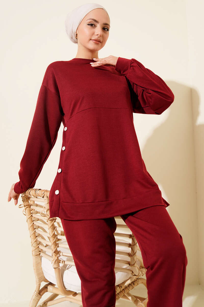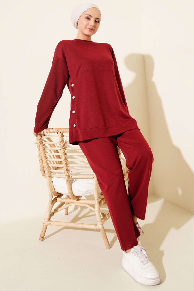 Metal Düğmeli İki İplik İkili Takım Bordo