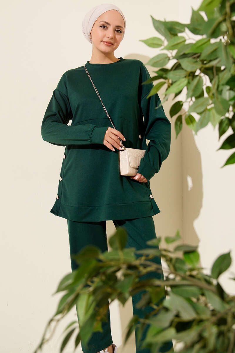 İki İplik Kapüşonlu Fermuarlı İkili Takım Zümrüt