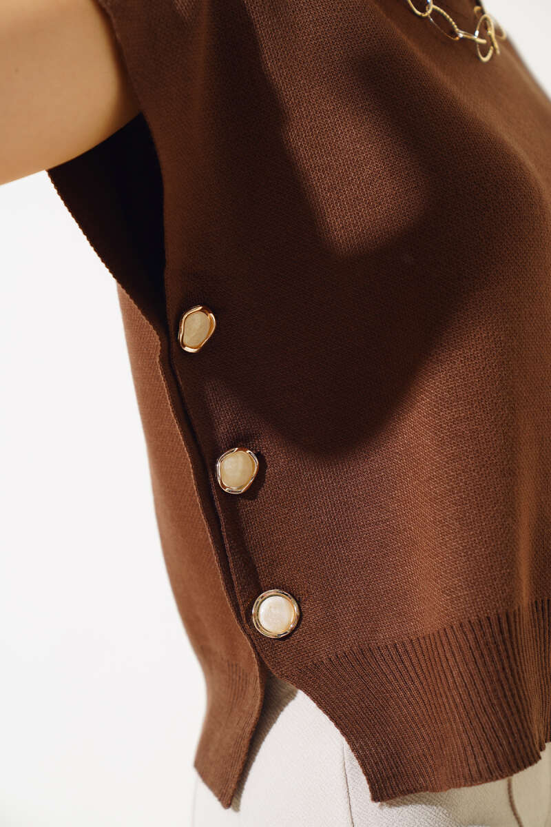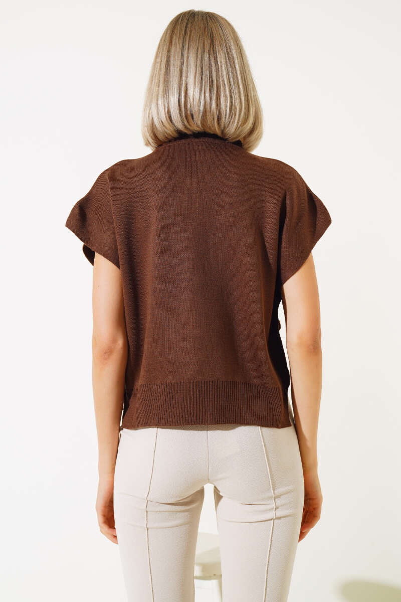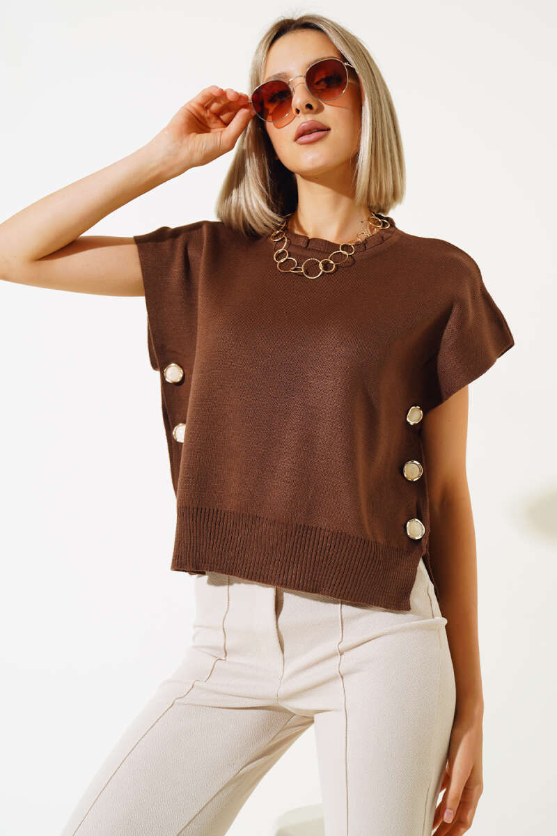 İnci Süslemeli Etekli Triko İkili Takım Kahve