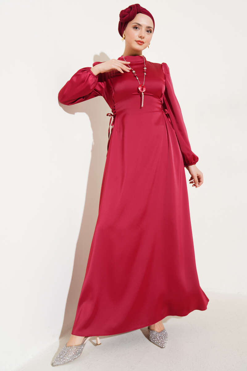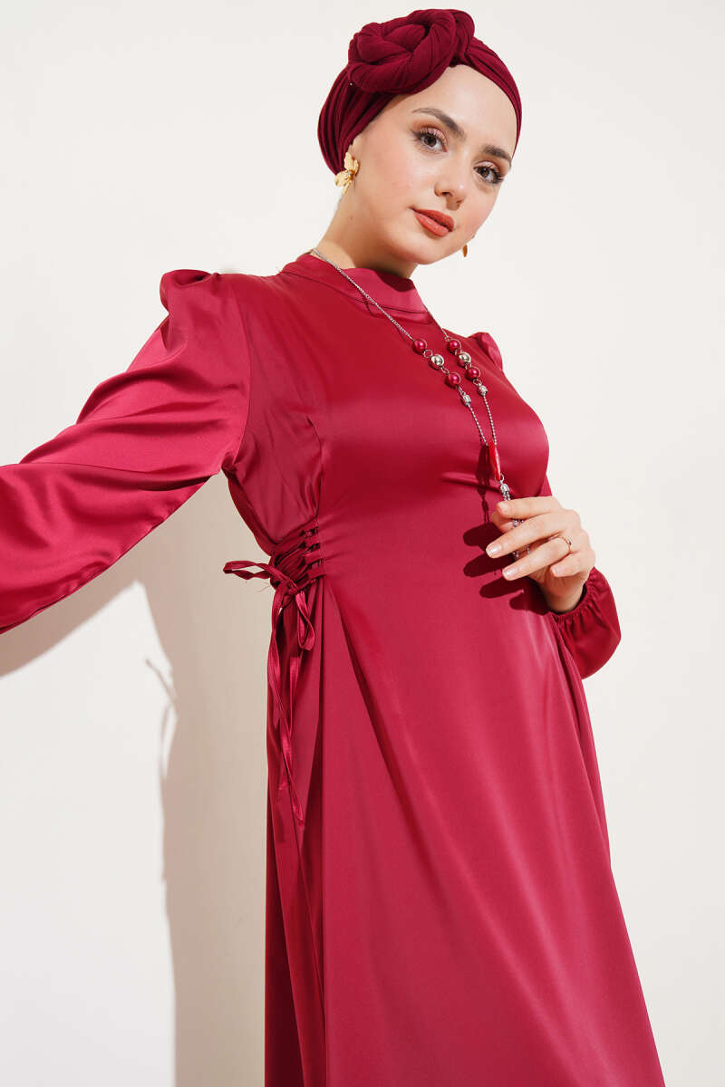 Gömlek Yaka Düğmeli Triko Elbise Bordo
