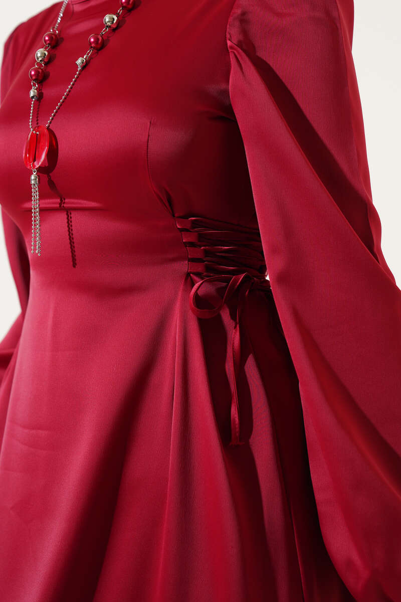 Zincir Kuşaklı Fitilli Elbise Zümrüt