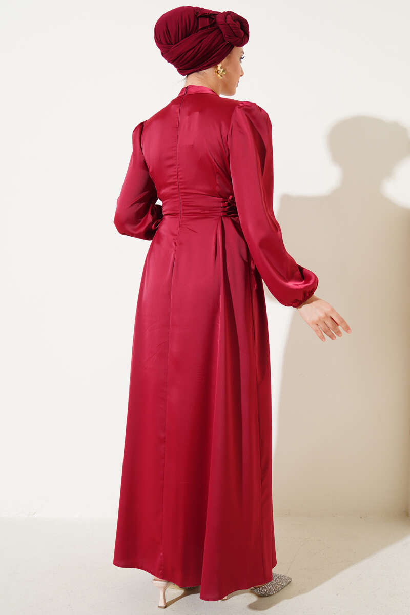 Yarım Taş Düğmeli Volanlı Elbise Taş