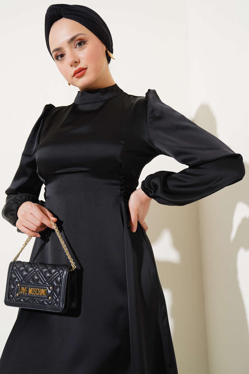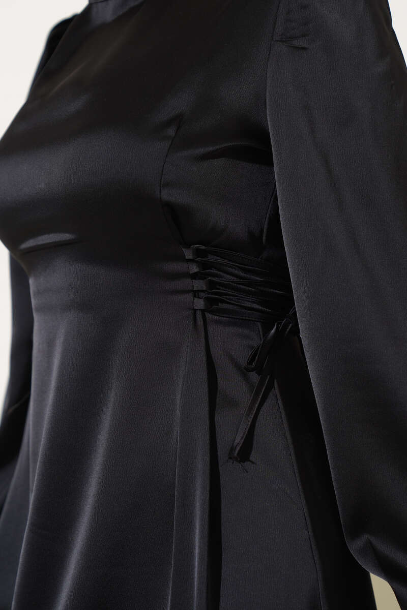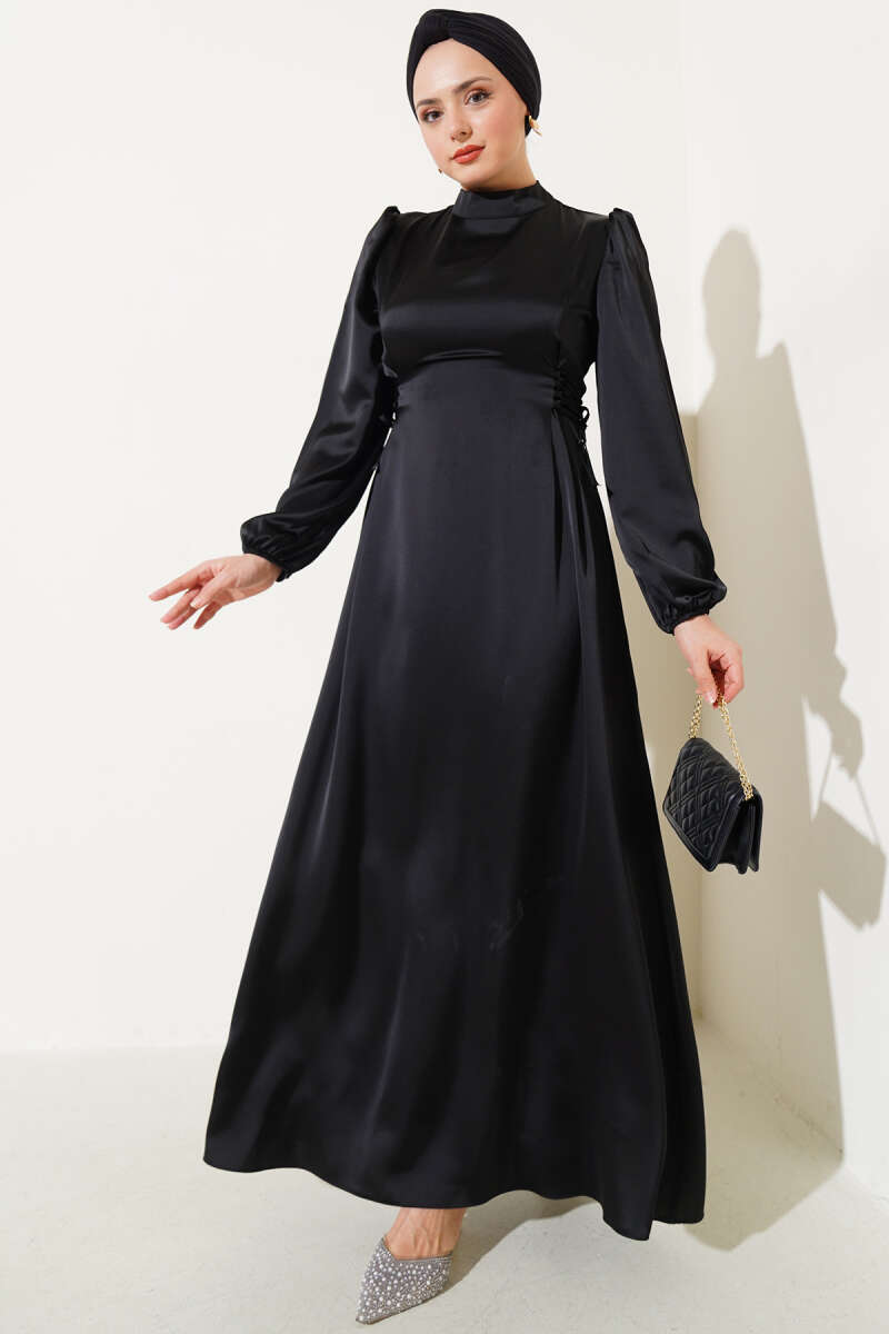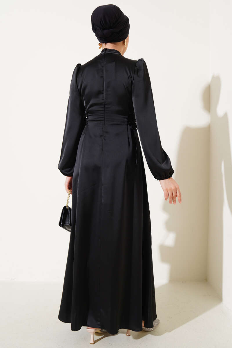 Omuz Pelerinli Taş Detaylı Abiye Elbise Siyah