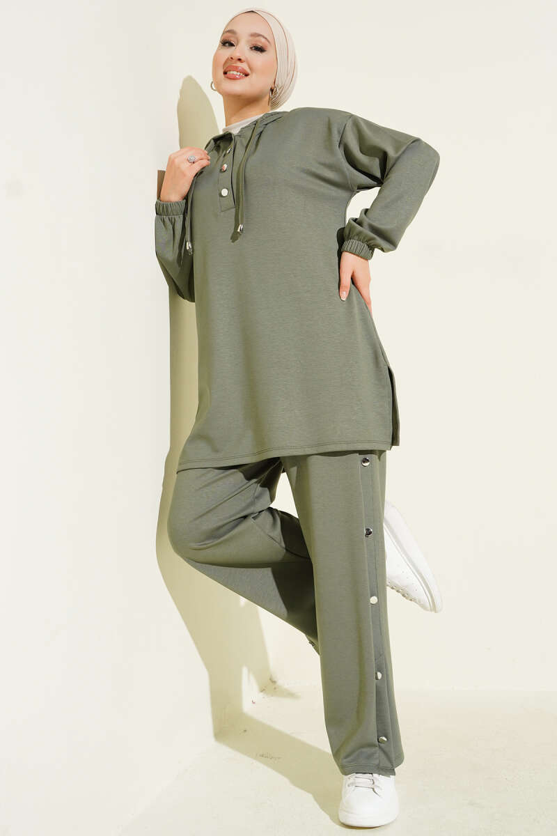 Loyşa Taşlı Fermuarlı İkili Takım Haki