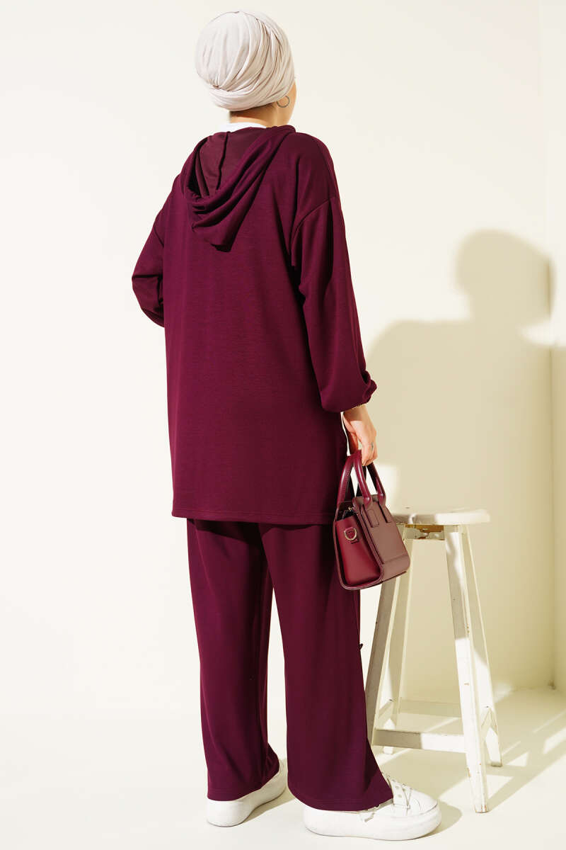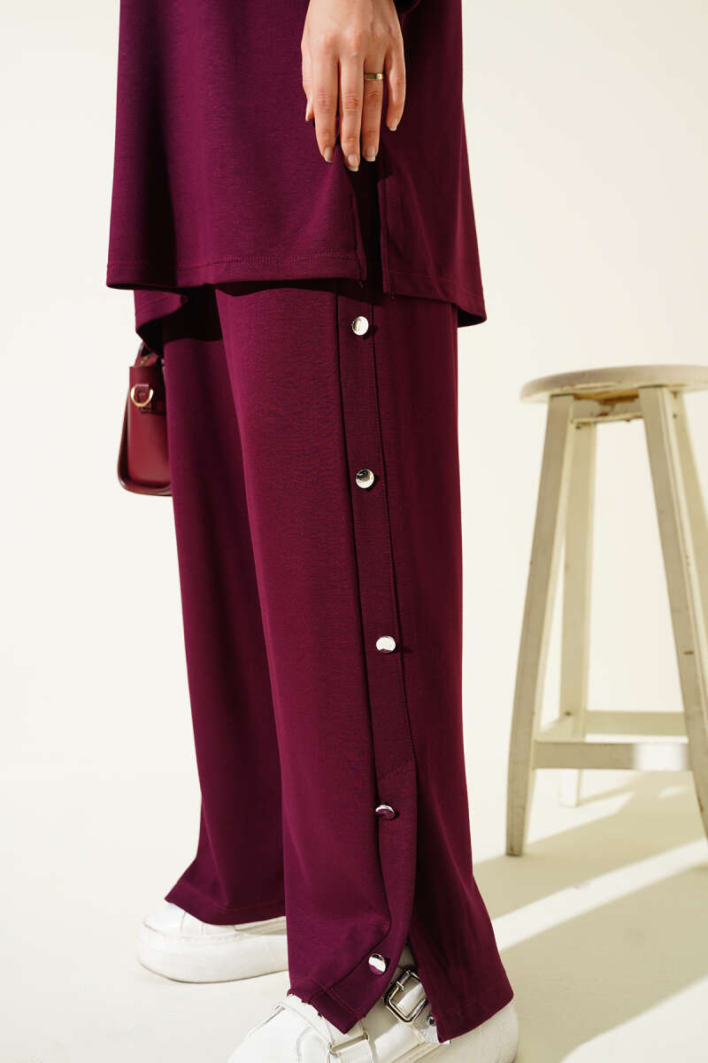 Önden Düğme Detaylı İp Bağcıklı İkili Takım Bordo