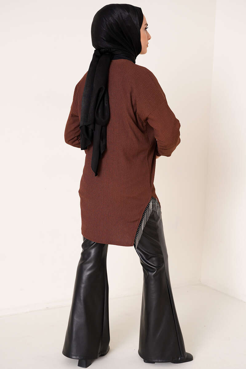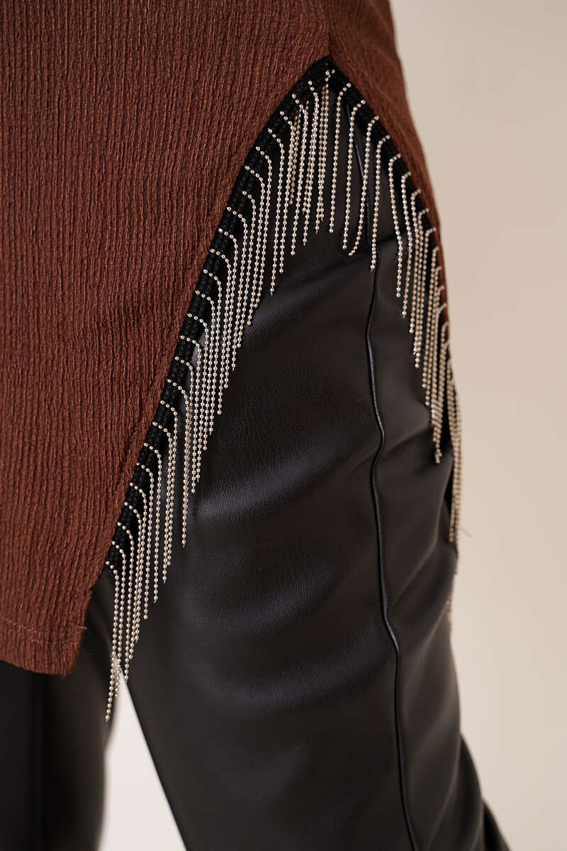 Yanları Püskül Zincir Detaylı Tunik Kahve