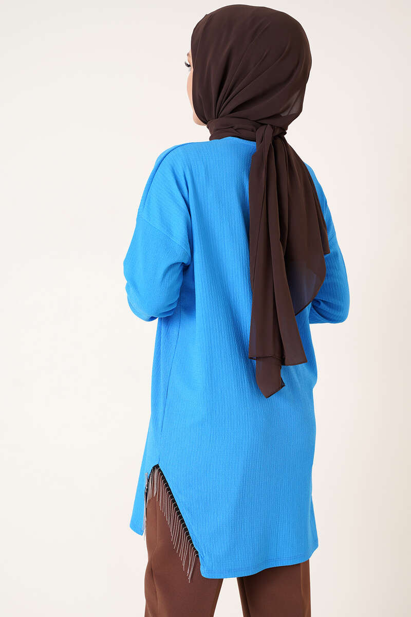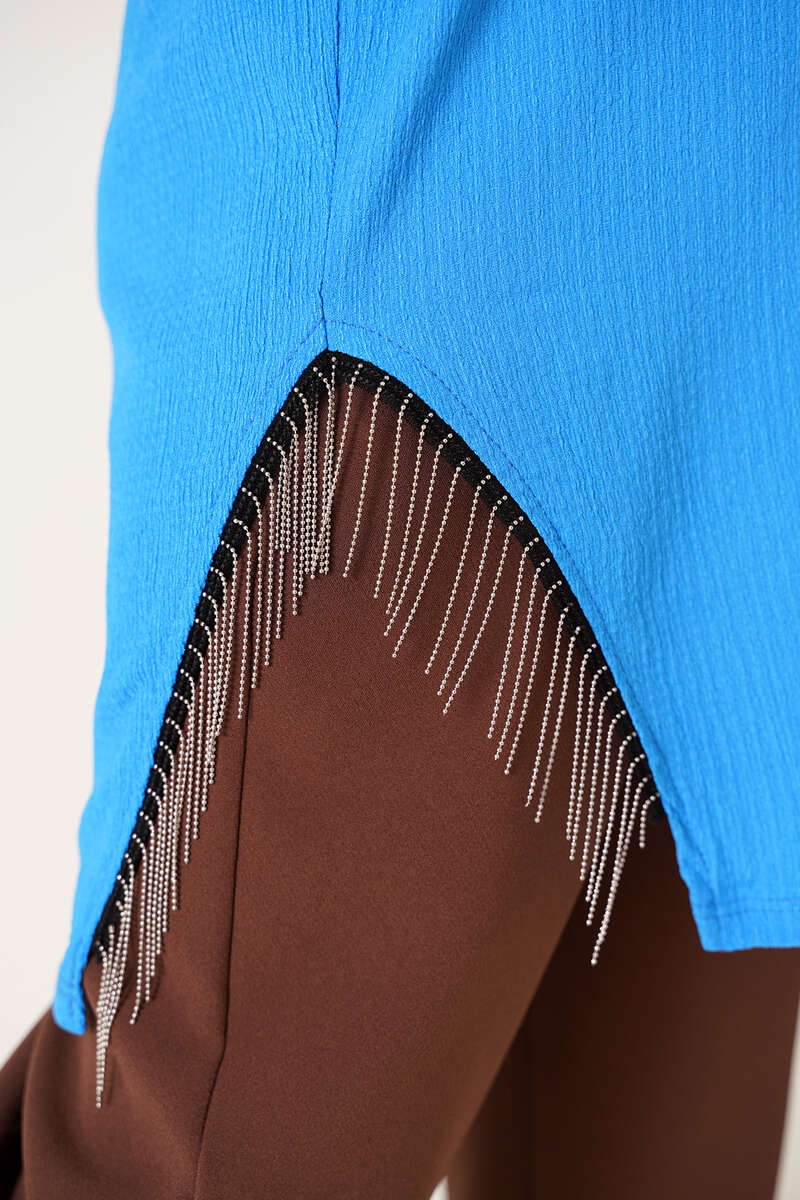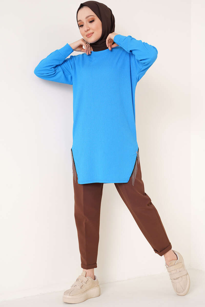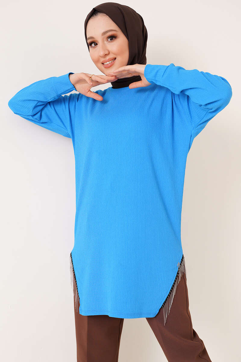 Yeni sezon tuniğimiz harika tasarımıyla dikkatleri üzerine çekmektedir. Tuniğimiz bürümcüktür. Yanlarında püsküllü zincir süslemeler bulunmaktadır. Her kıyafetinizle rahatlıkla kombin yapabilirsiniz. Farklı renk seçenekleri mevcuttur.