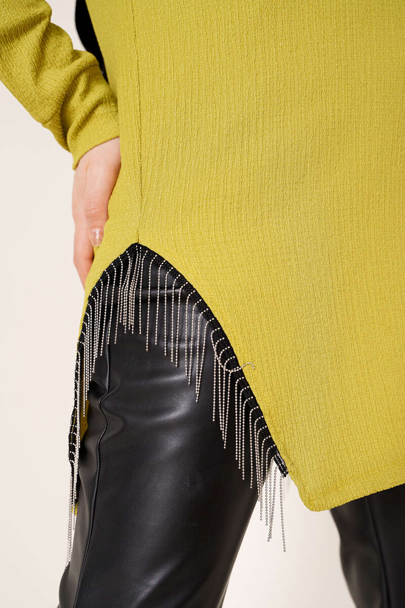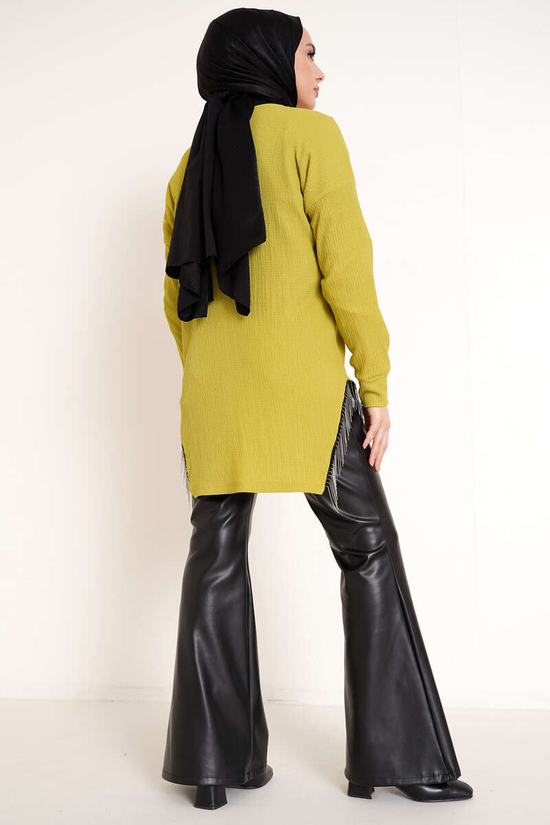 Yanları Püskül Zincir Detaylı Tunik Yağ Yeşili