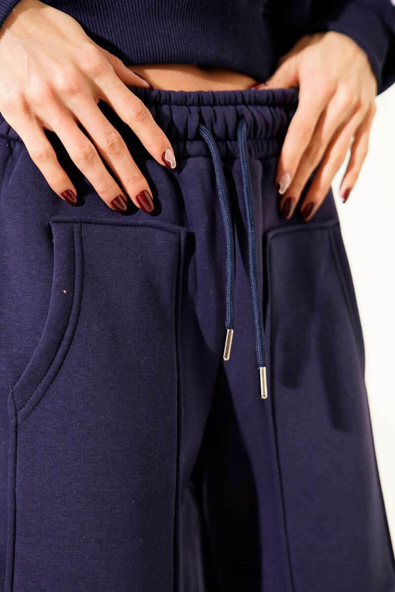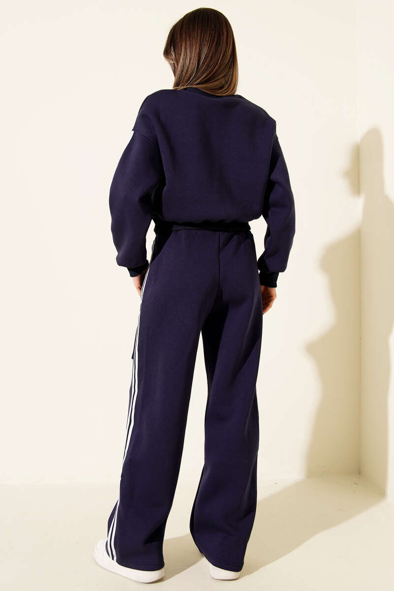 Yanları Şeritli Üç İplik Sweatli İkili Takım Lacivert
