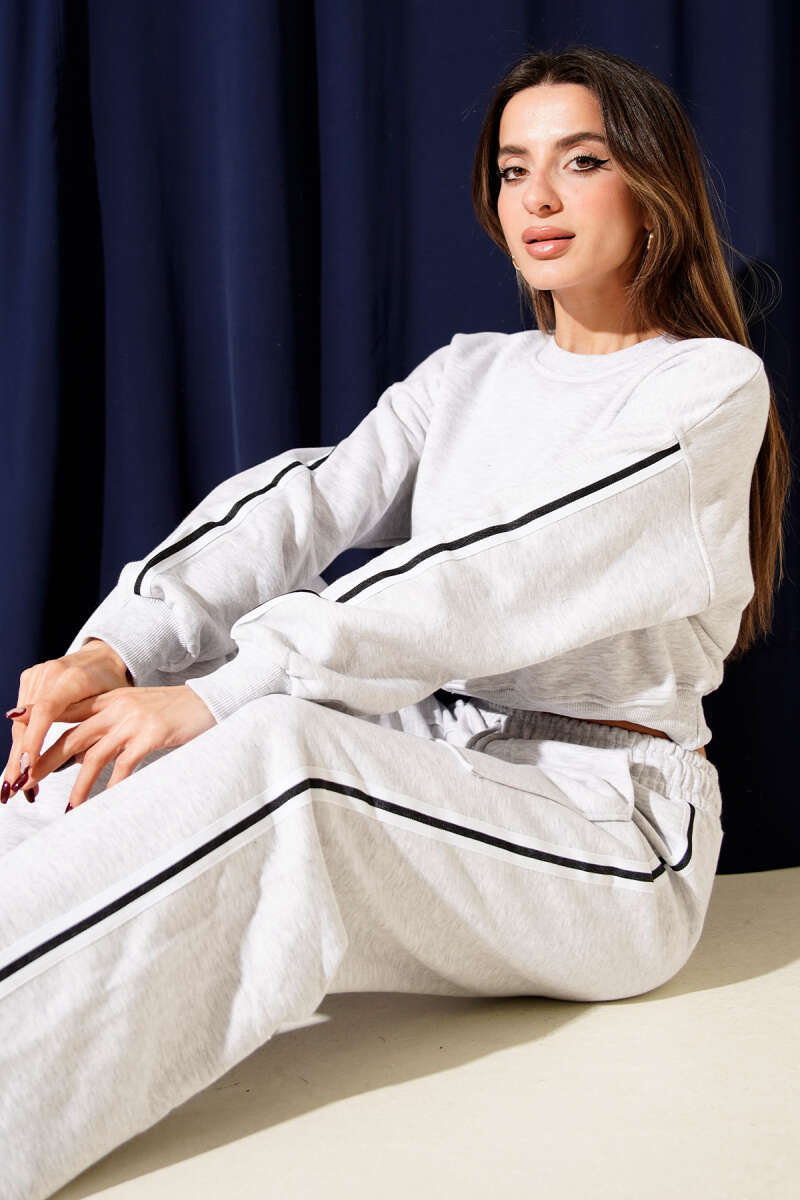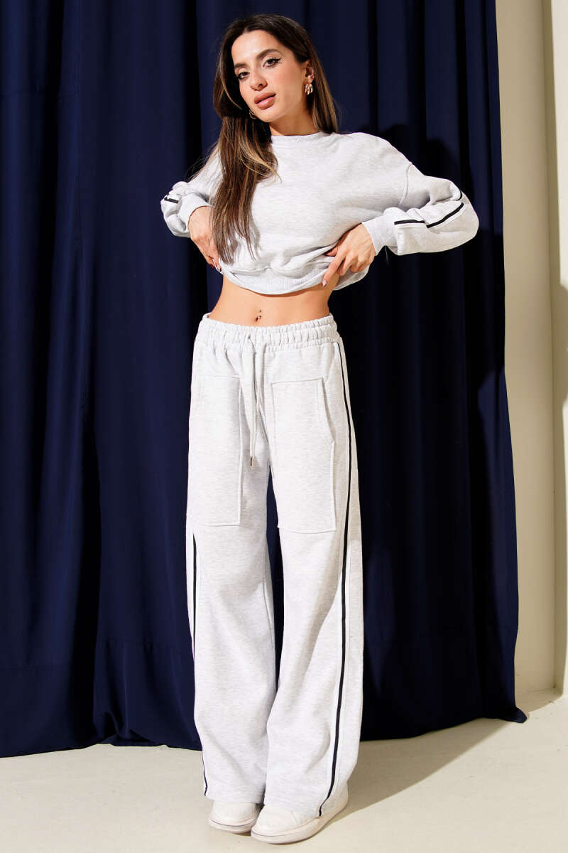Fermuarlı Bel Lastikli İkili Takım Ekru