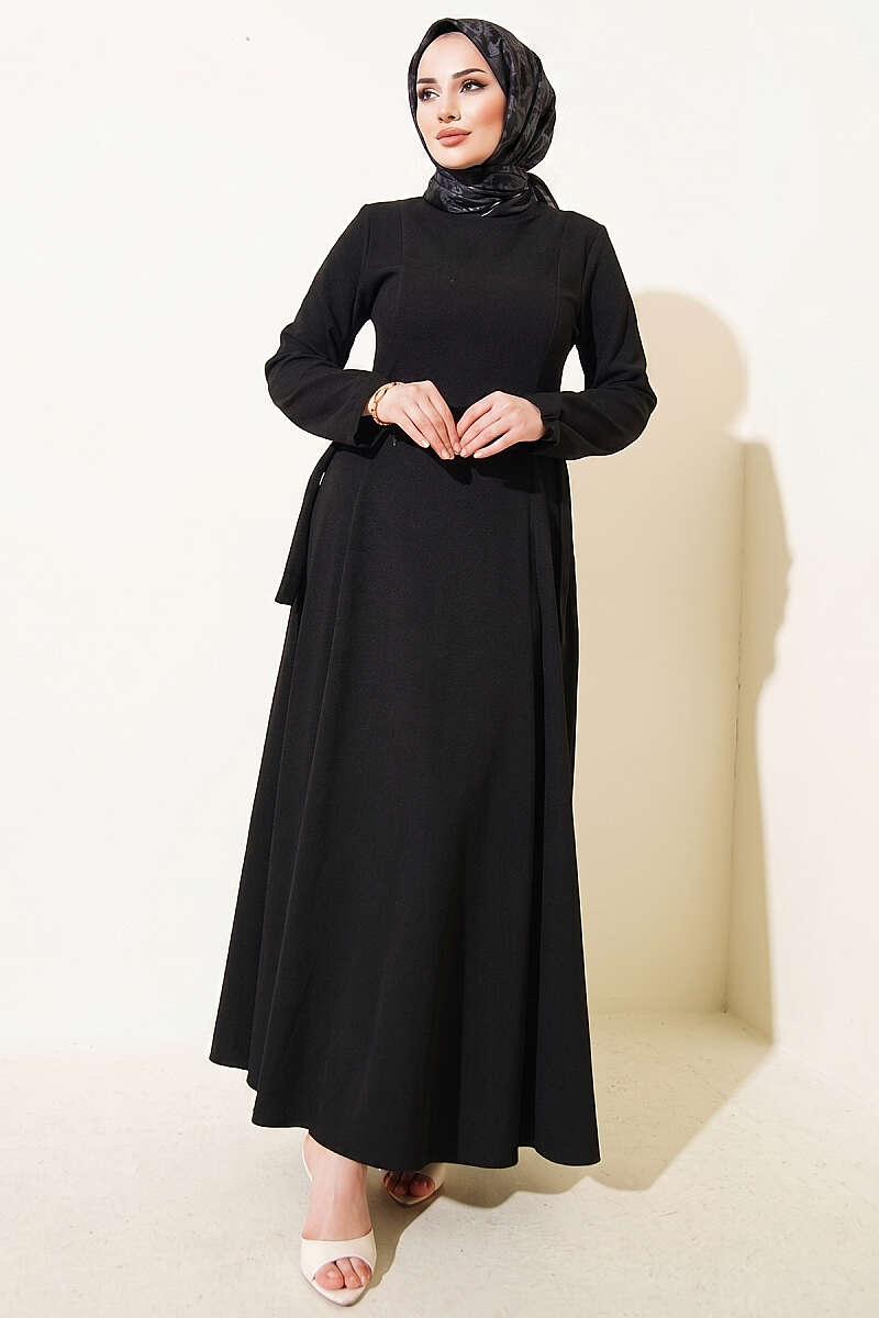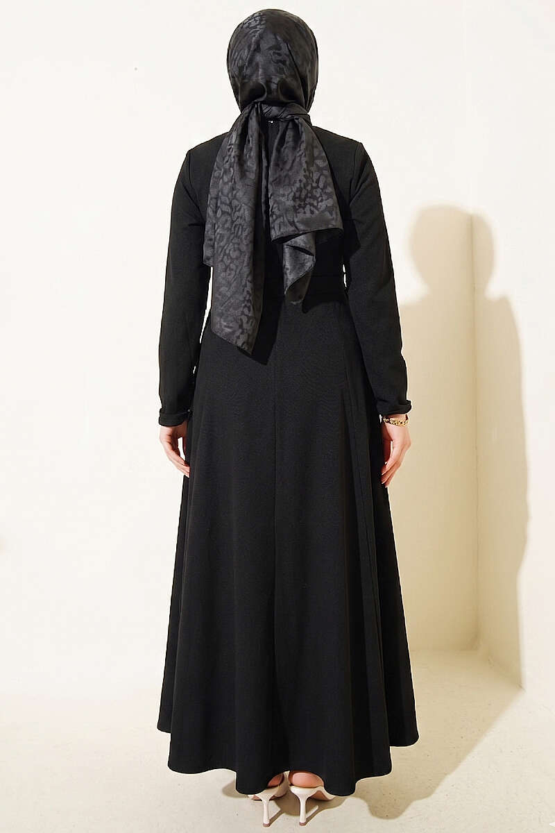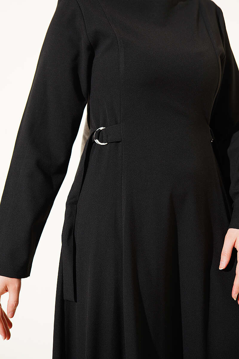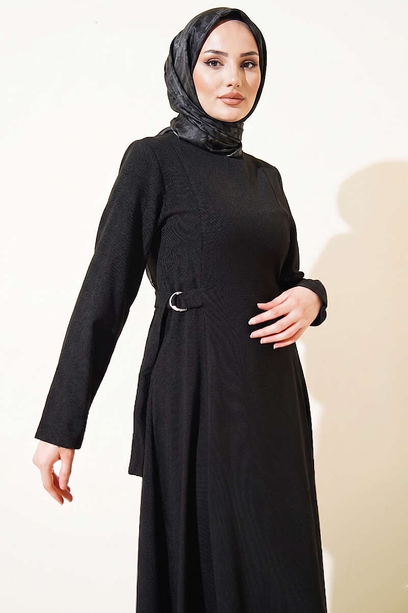 Yanları Tokalı Pensli Elbise Siyah