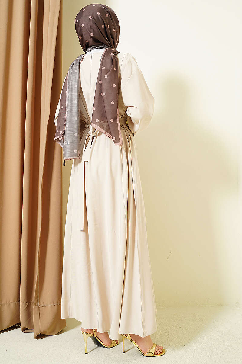 Çiçek Nakışlı Pelerinli Elbise Bej