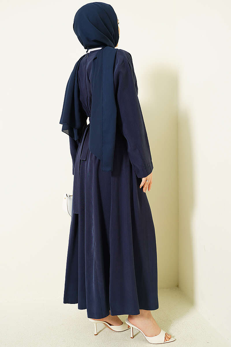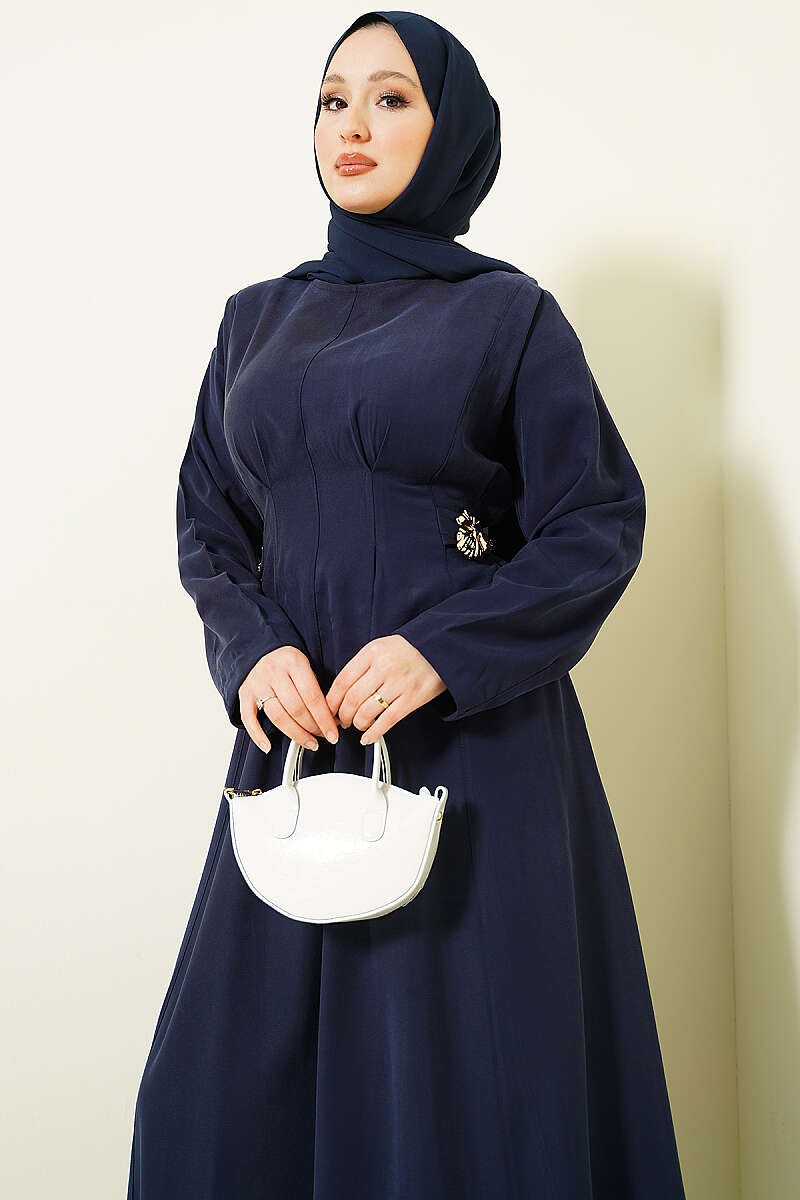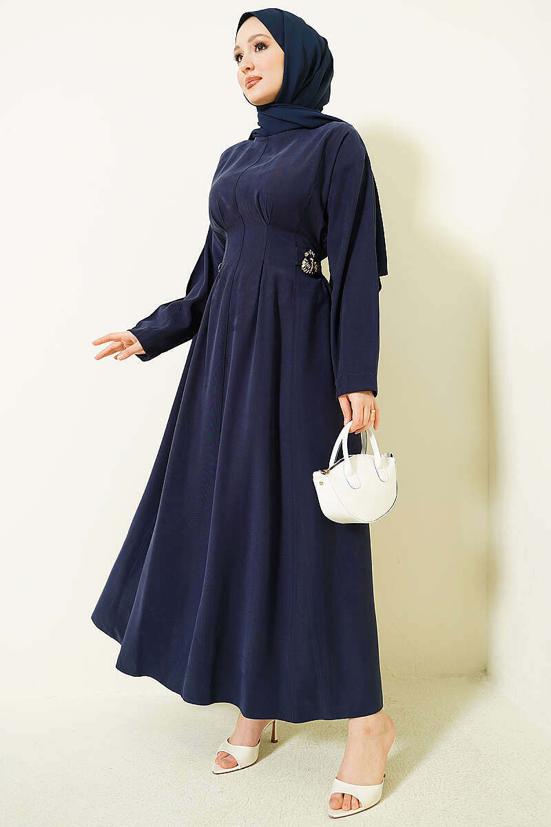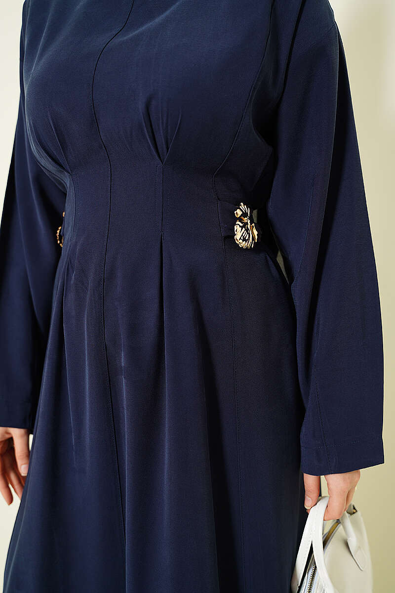 Yanları Tokalı Pensli Tensel Elbise Lacivert