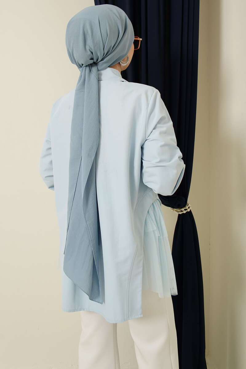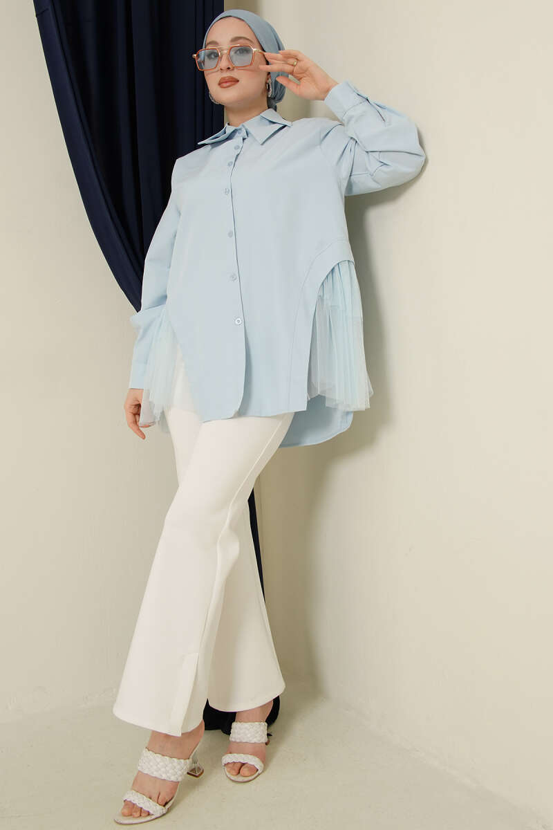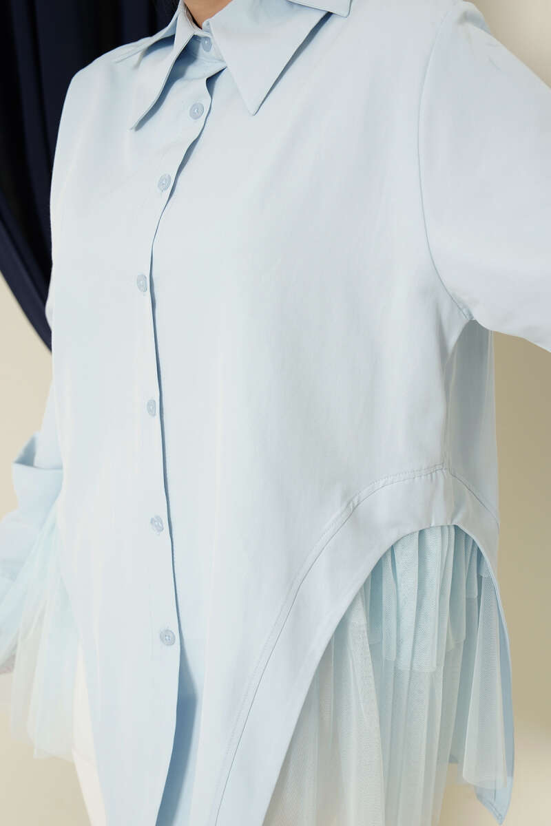 Yanları Tüllü Çift Yaka Gömlek Bebe Mavi