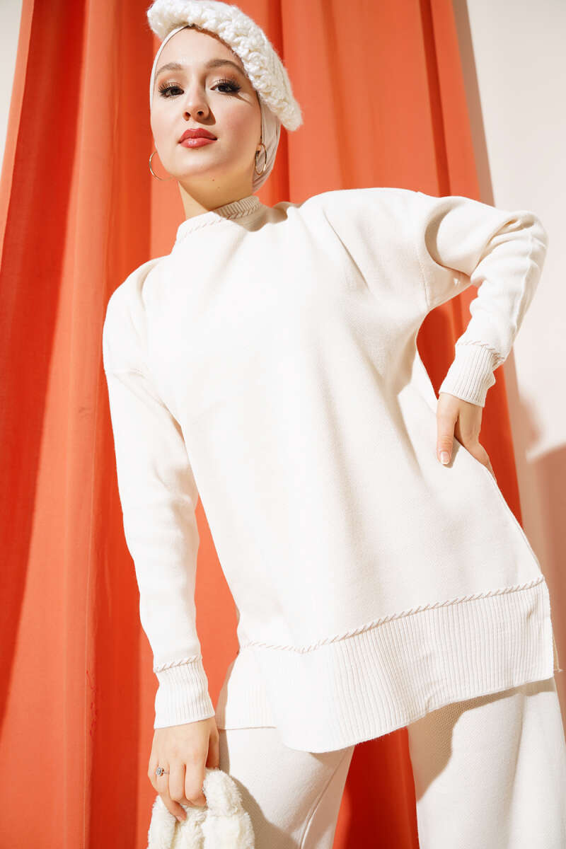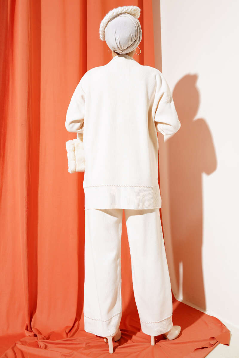 Dikiş Detaylı Basic Triko İkili Takım Bej