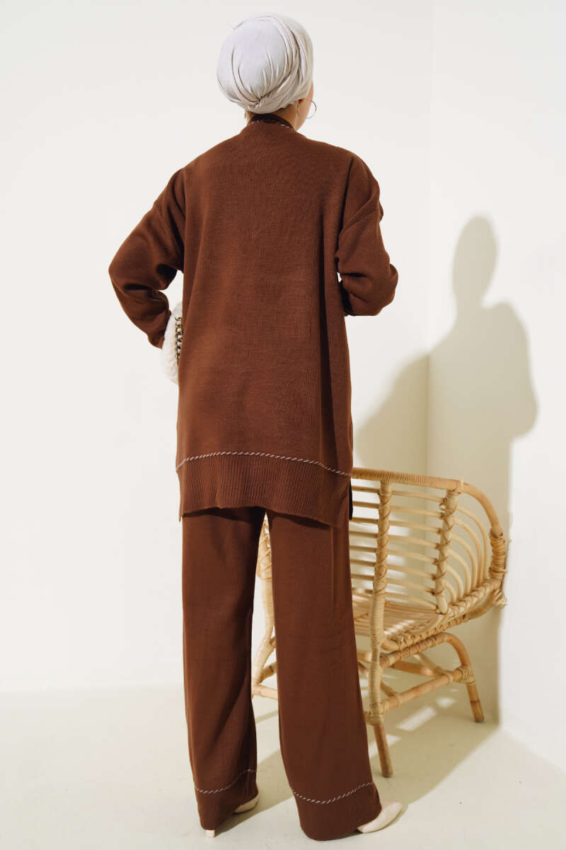 Taşlı Baklava Desen Triko İkili Takım Kahve