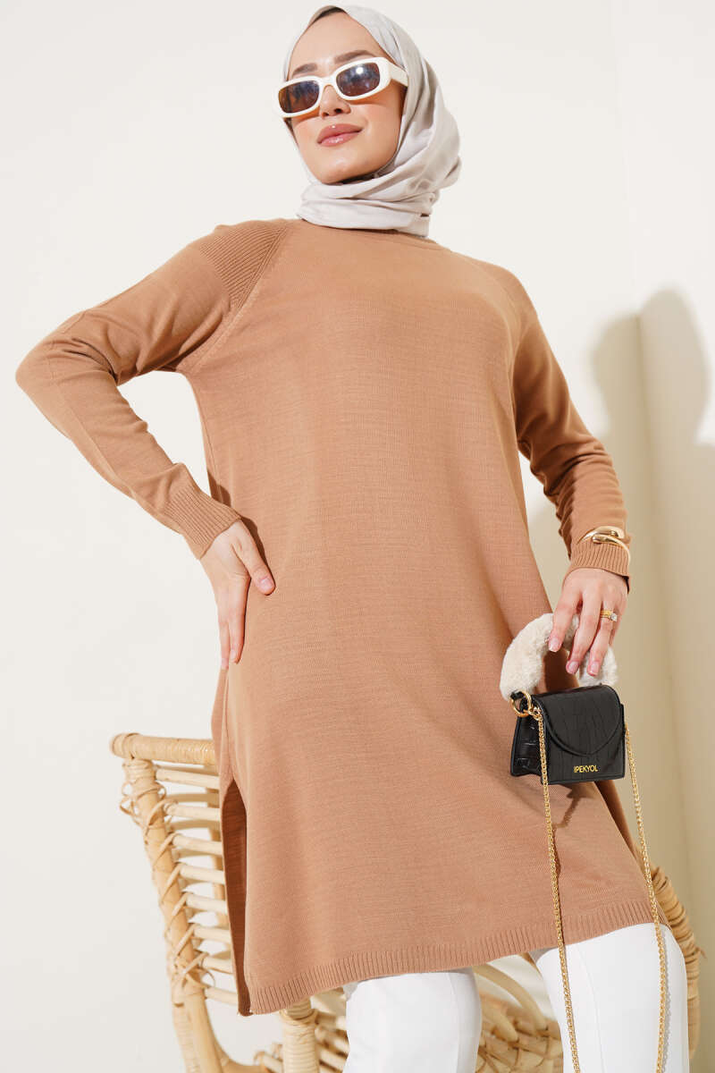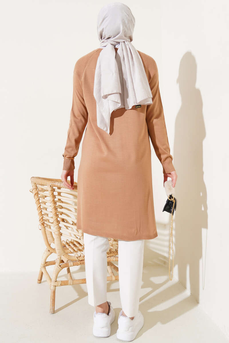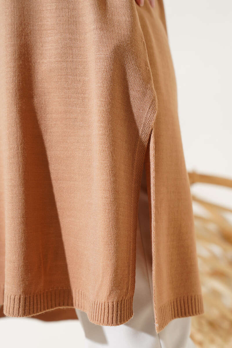 Kol Düğme Detaylı Triko Tunik Kırçıllı Bej