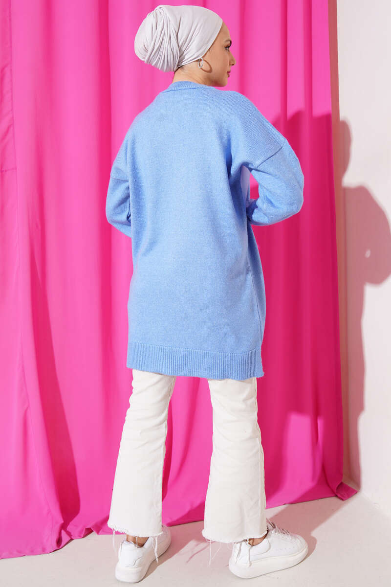 Çizgi Baklava Desen Triko Tunik Su Yeşili
