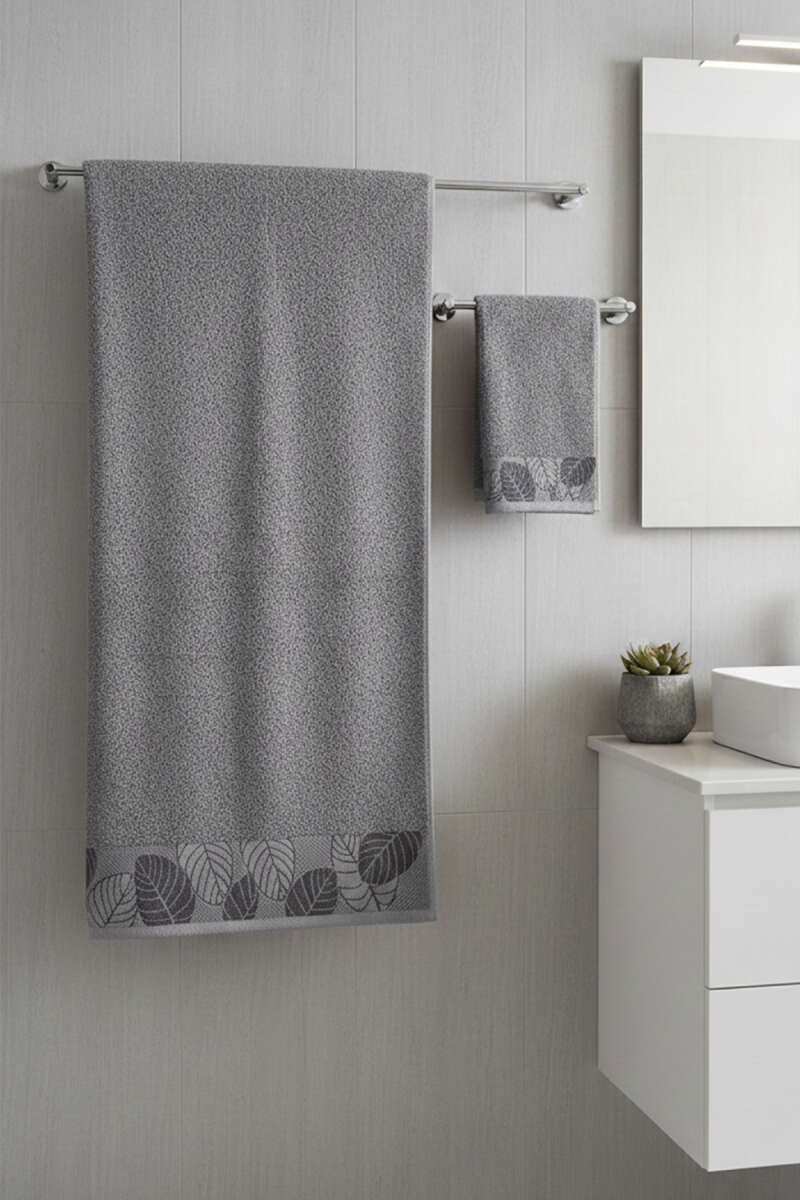 Yaprak Desen Banyo Havlu 2'li Takım Gri