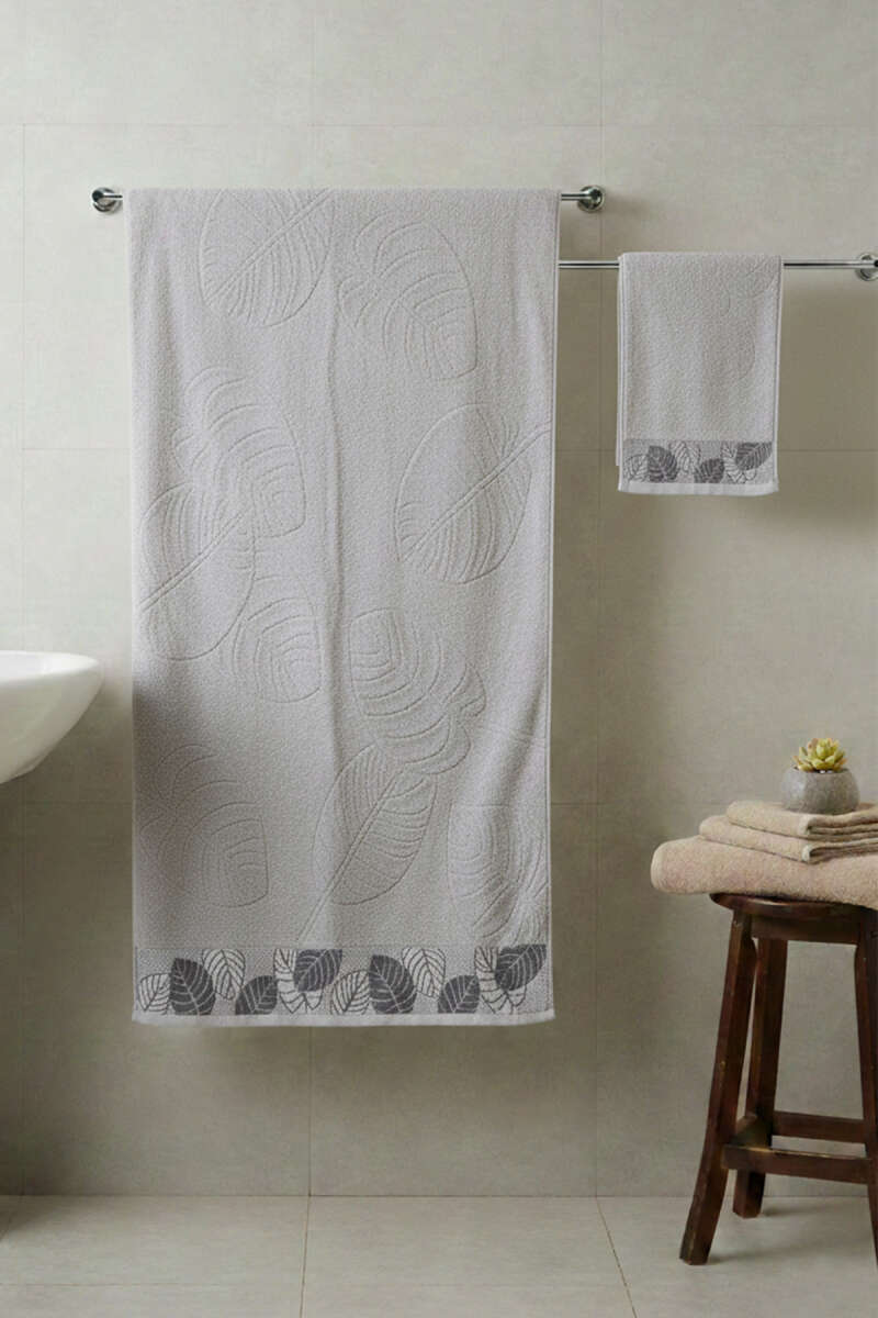 Yaprak Desen Banyo Havlu 2'li Takım Gri