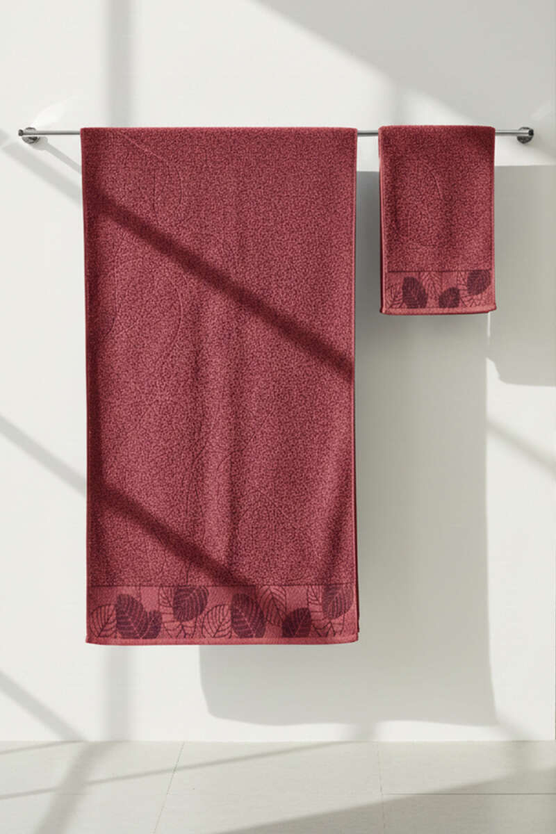Yaprak Desen Banyo Havlu 2'li Takım Kiremit