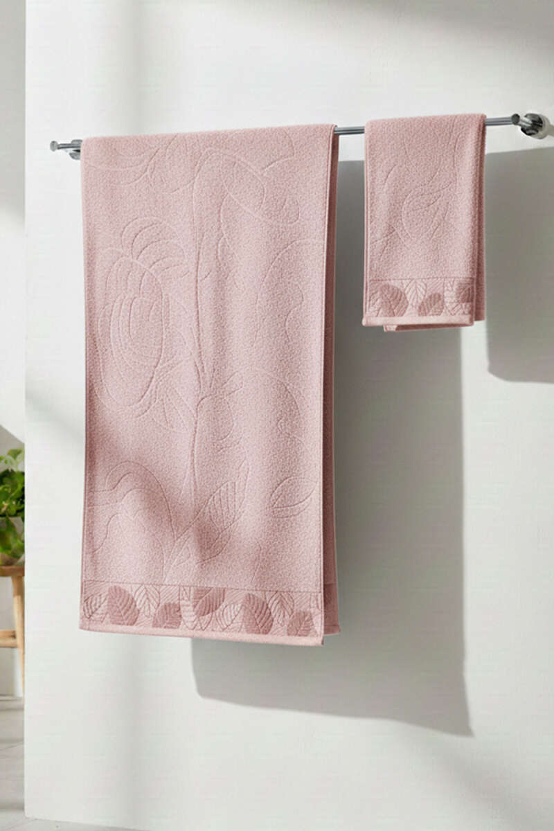 Yaprak Desen Banyo Havlu 2'li Takım Somon