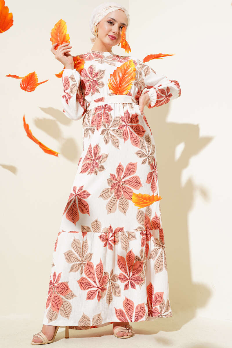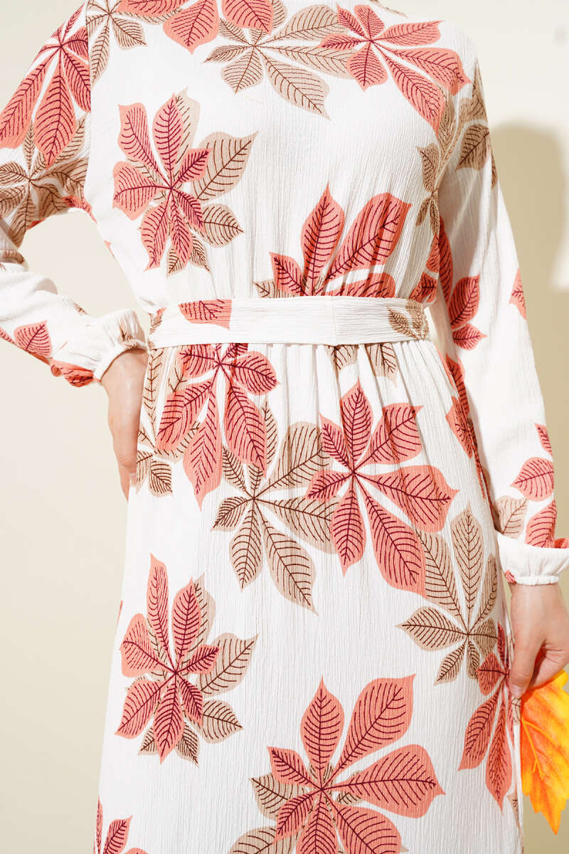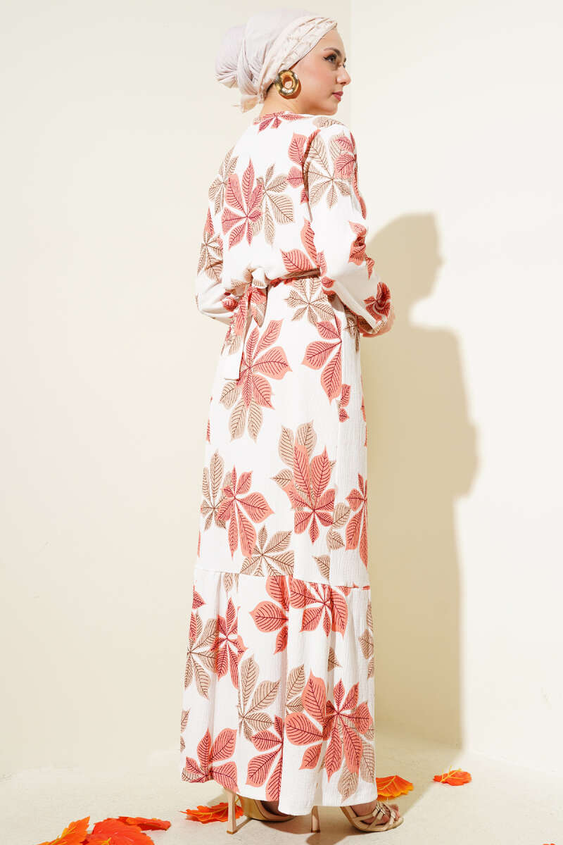 Metal Düğme Süslemeli Bağcıklı Elbise Vizon