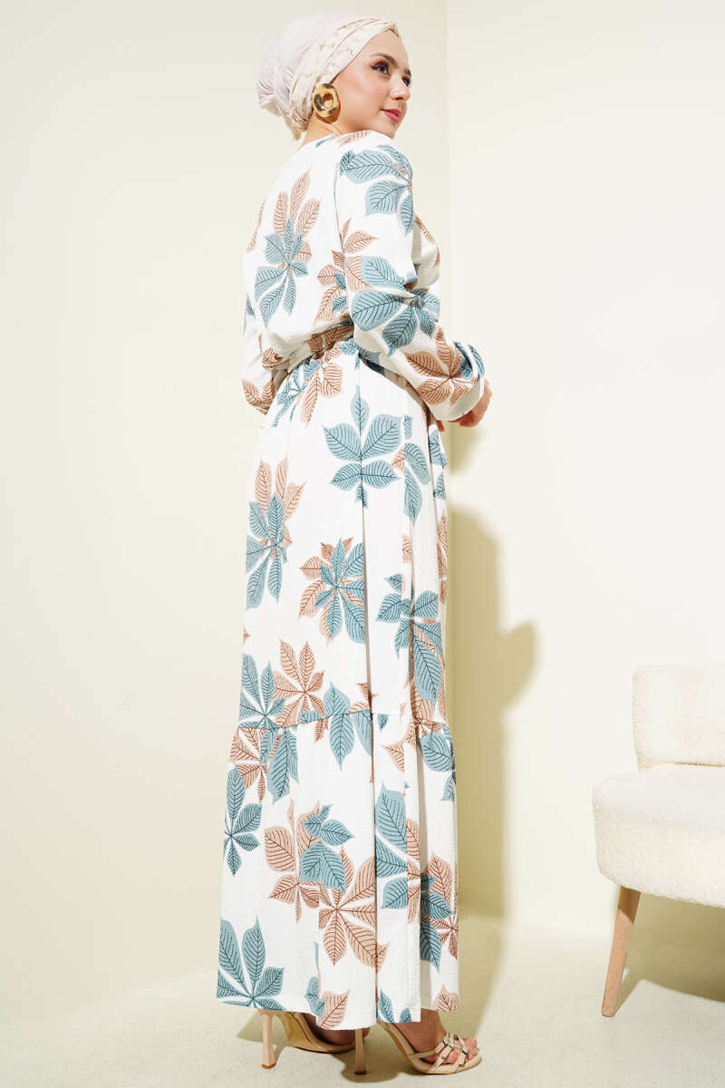 Kolları Fiyonk Detaylı Selanik Elbise Taş