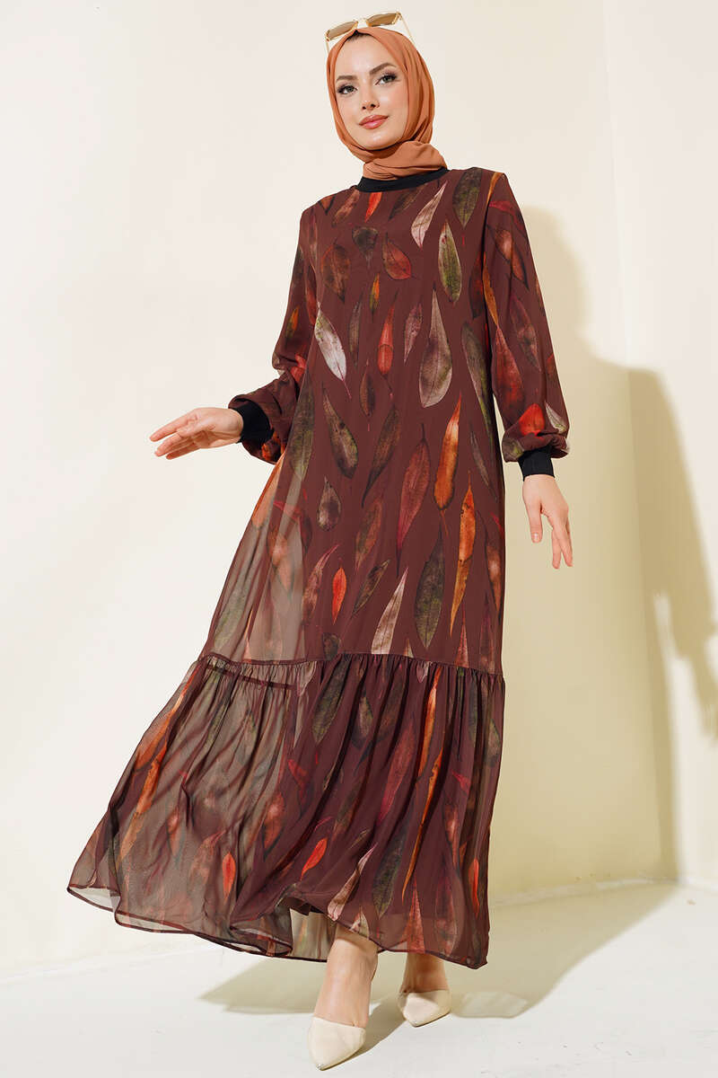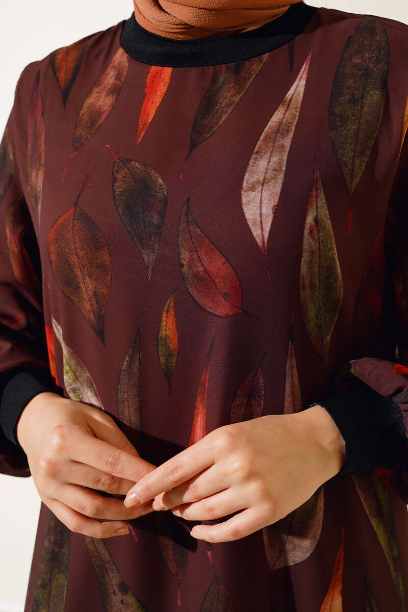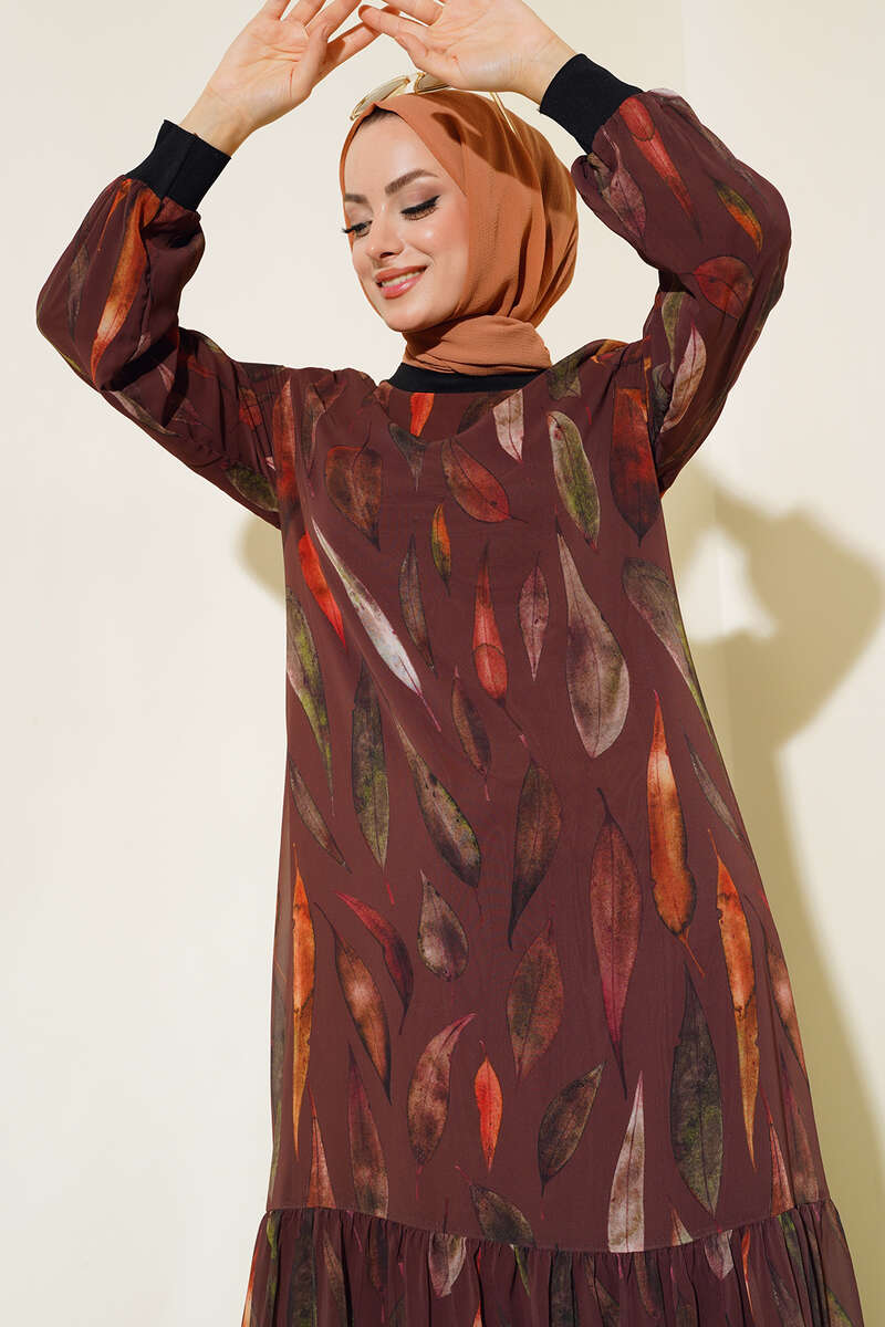Yeni sezon elbisemiz şık tasarımıyla sizler için geldi. Elbisemiz yaprak desenleriyle hareketlilik kazanmıştır. Kol bilekleri ve yakası ribanalıdır. Elbisemiz kat modeldir. Astarlıdır. Hem şık hem sportif olan elbisemizi çok seveceksiniz.