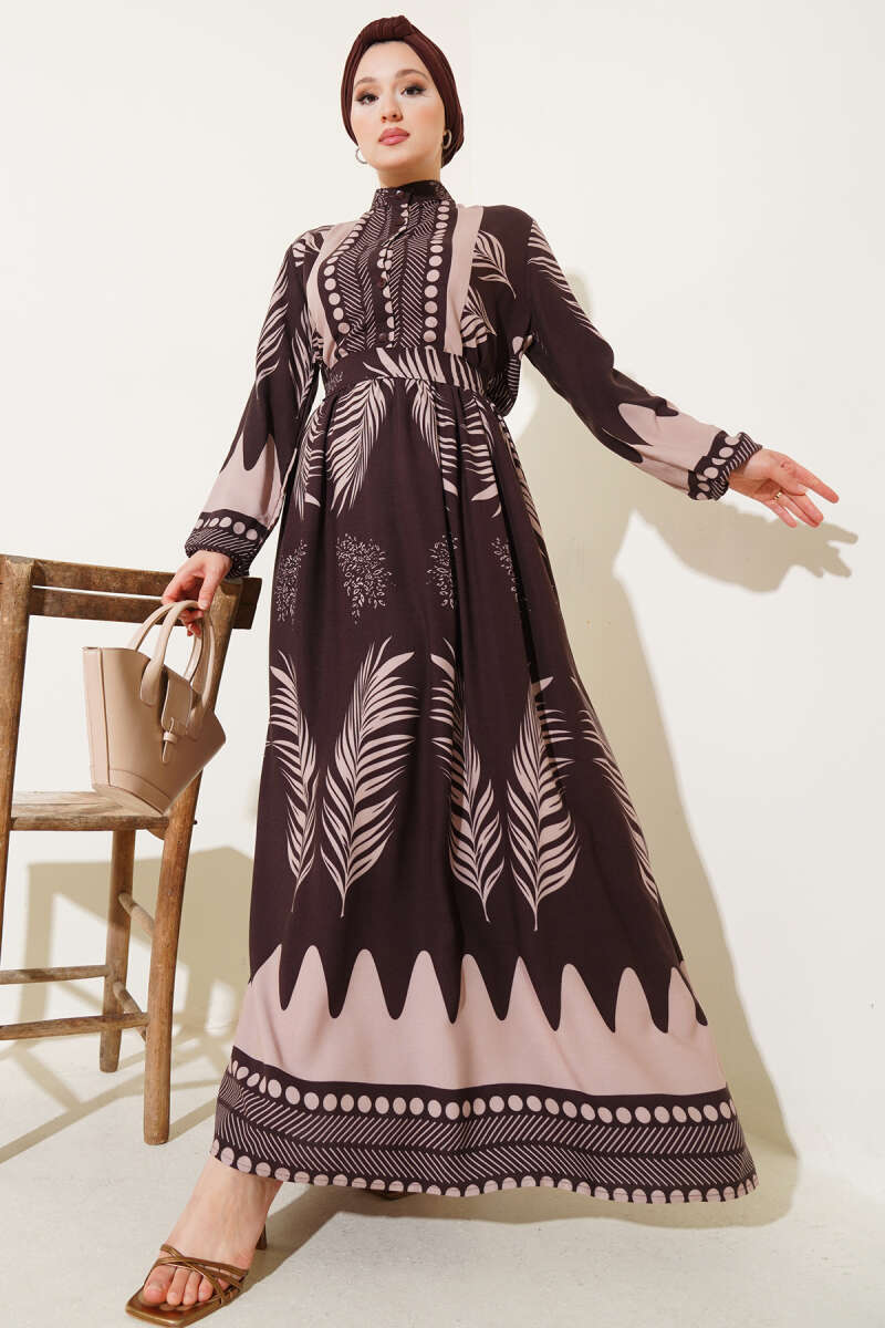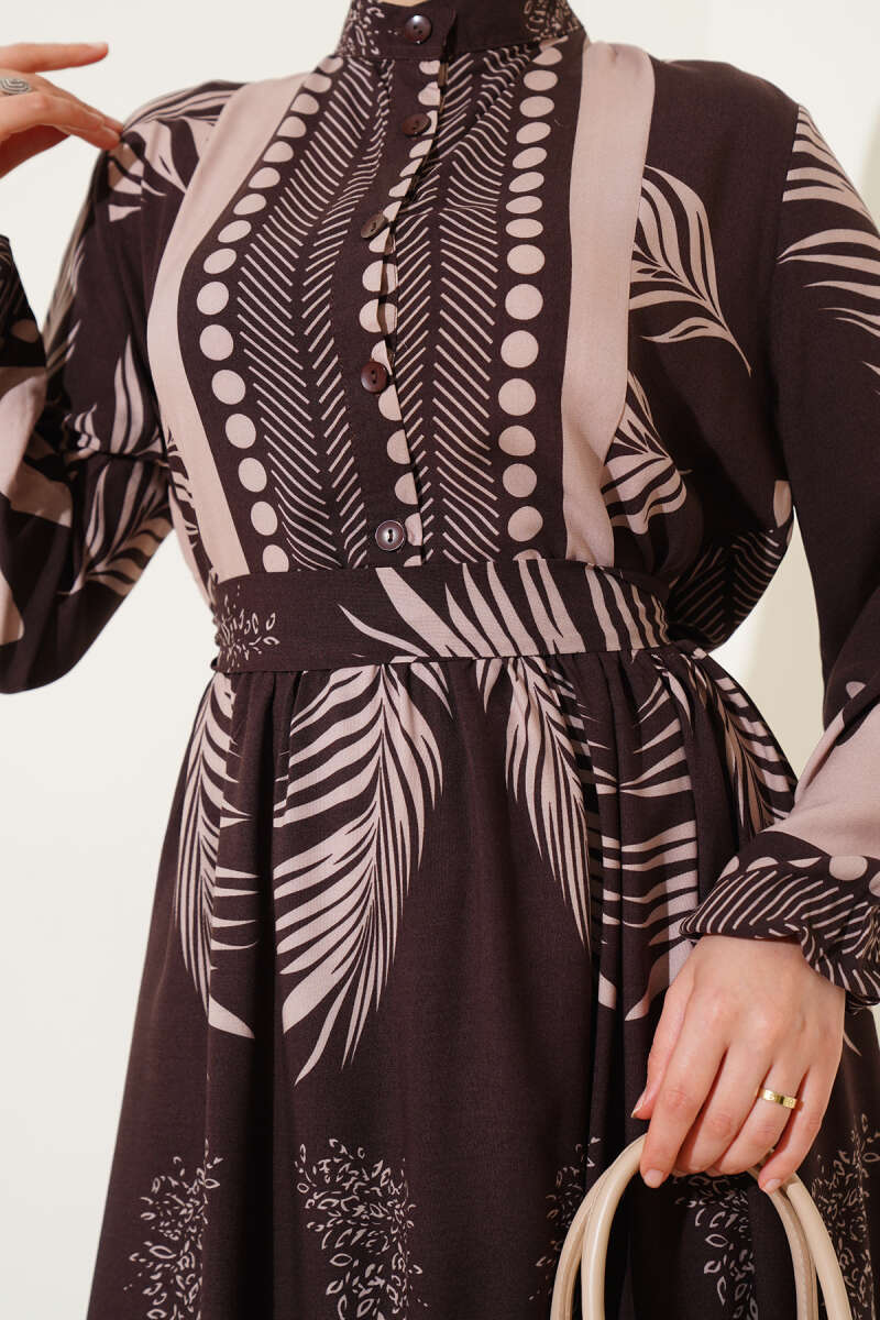 Pelerin Detaylı Pileli Triko Elbise Kahve