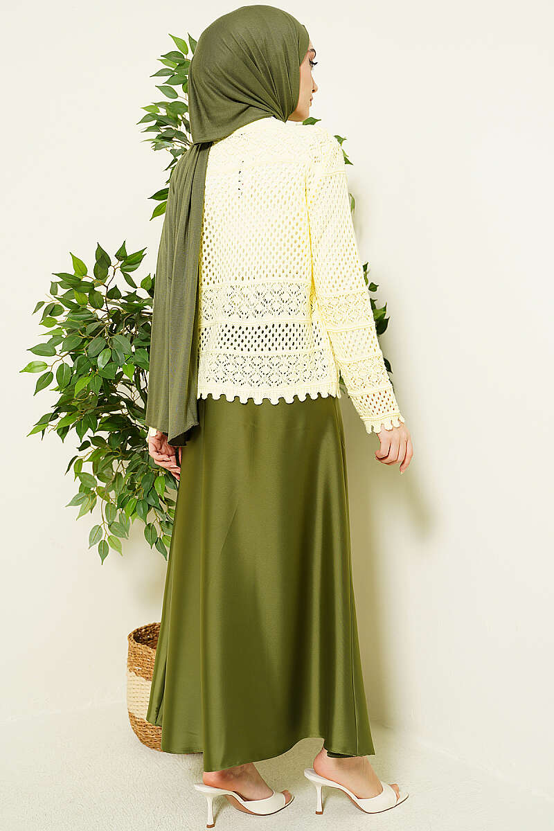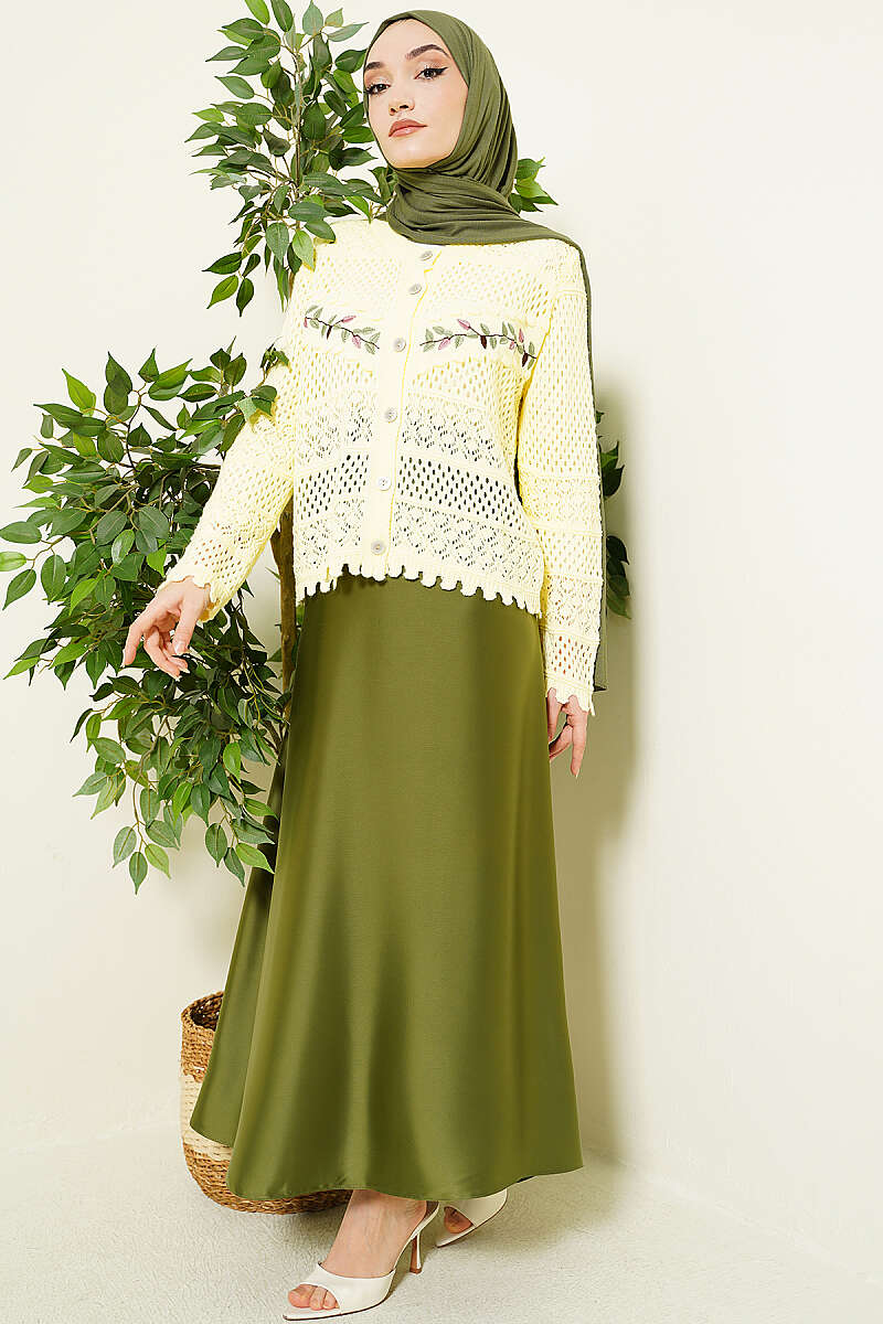 • Zarif Yaprak Nakışları ve Ajur: Üzerindeki özenle işlenmiş yaprak nakışları ve klasik ajurlu (delikli) örgü detayları, tasarıma derinlik ve zengin bir karakter katar.