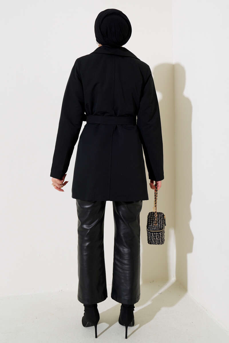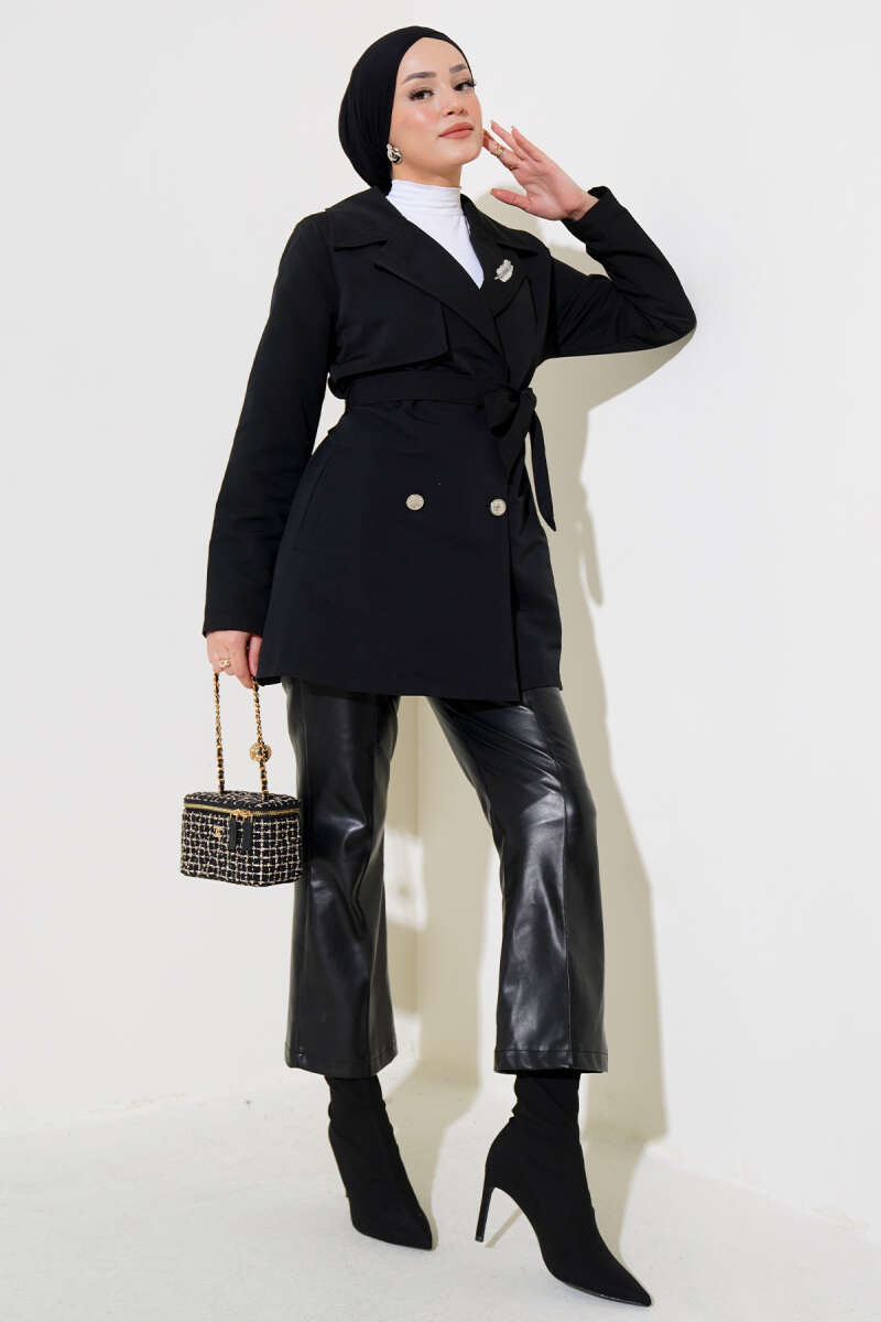 Yaprak Taşlı Pelerinli Trençkot Siyah