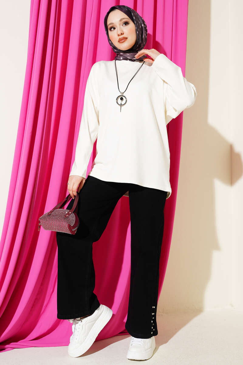 Yarasa Kol Basic Loyşa Tunik Ekru