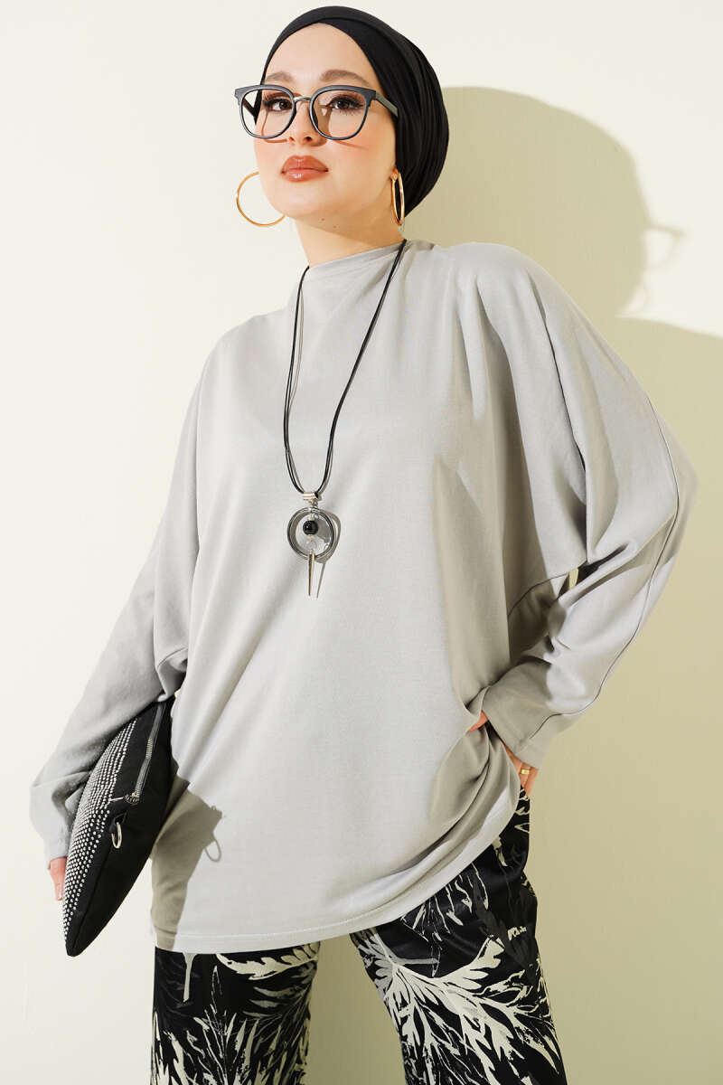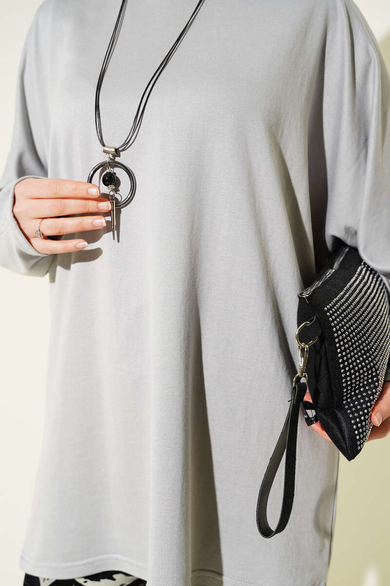 Yarasa Kol Basic Loyşa Tunik Gri