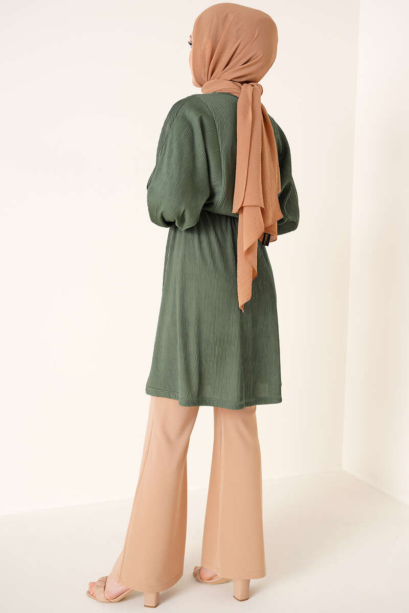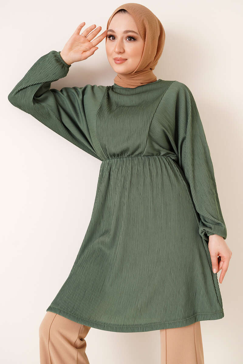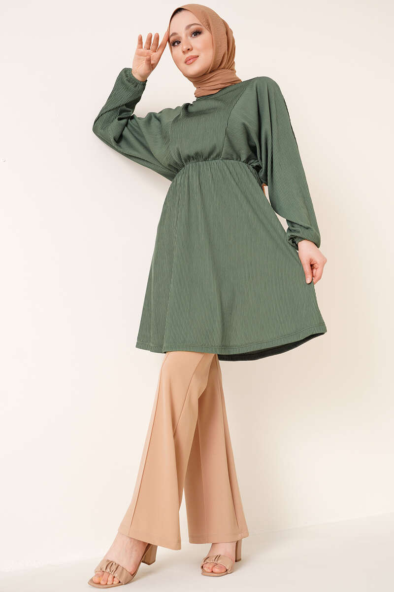 Yarasa Kol Beli Lastikli Tunik Çağla Yeşili