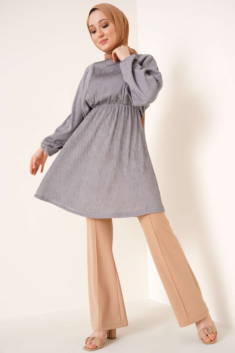 Yeni sezon yarasa kol tuniğimiz bel lastiklidir. Oval yaka olan tuniğimizin bilekleri lastiklidir. Şık kombinlerinizde tamamlayıcı parça olarak kullanacağınız tunik sezonun favorisidir.