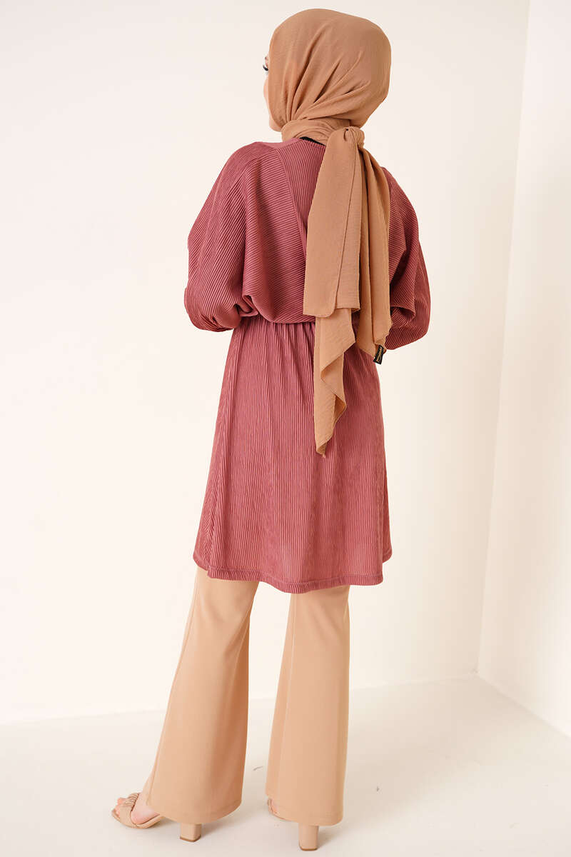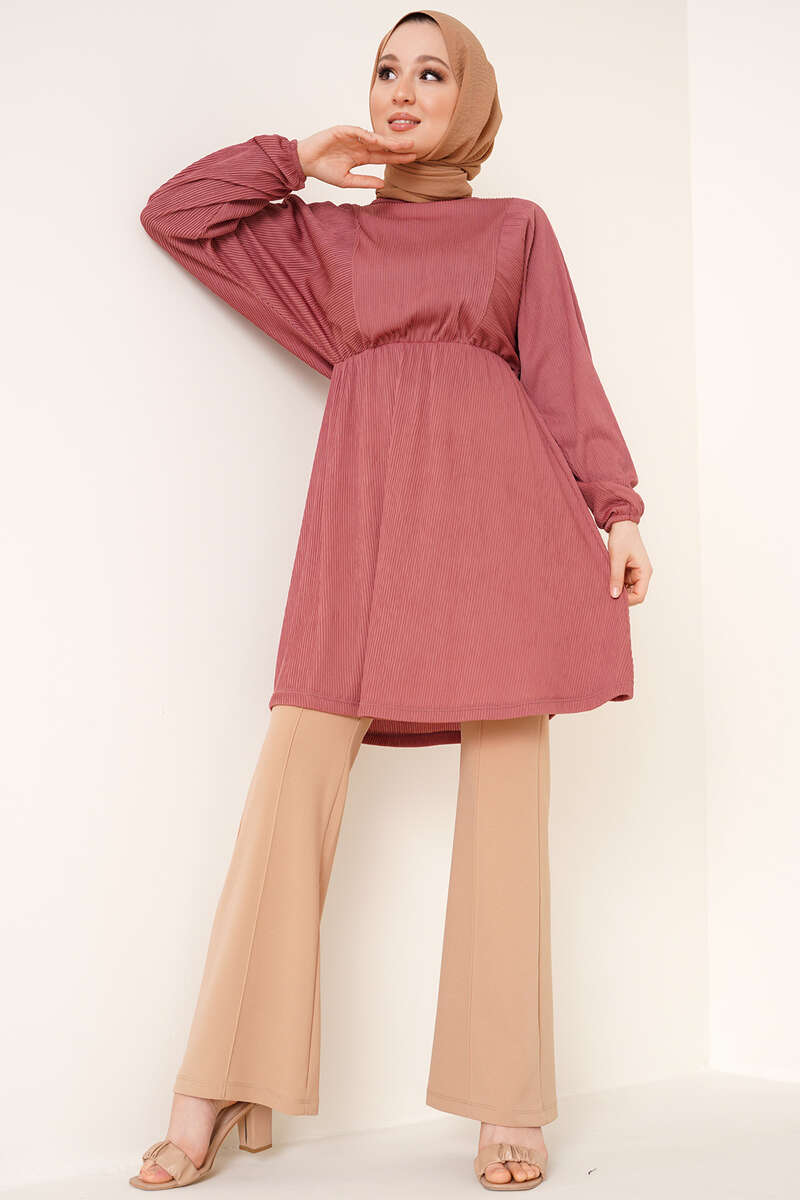 Yarasa Kol Beli Lastikli Tunik Gül Kurusu