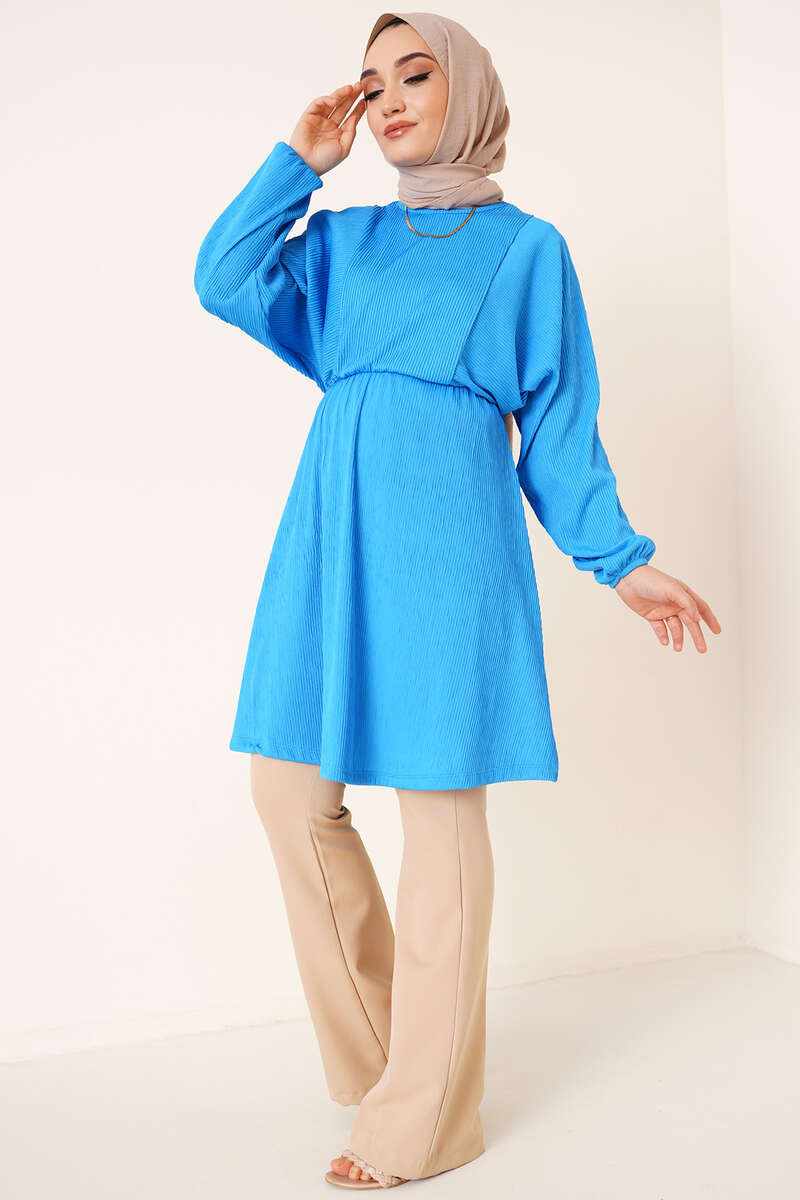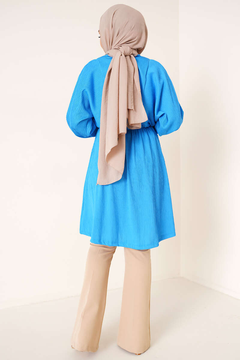 Yarasa Kol Beli Lastikli Tunik Mavi