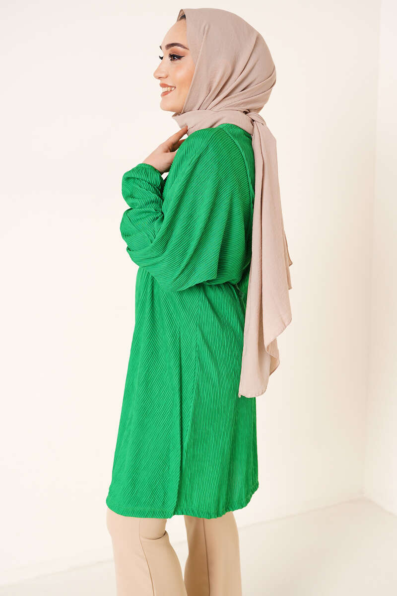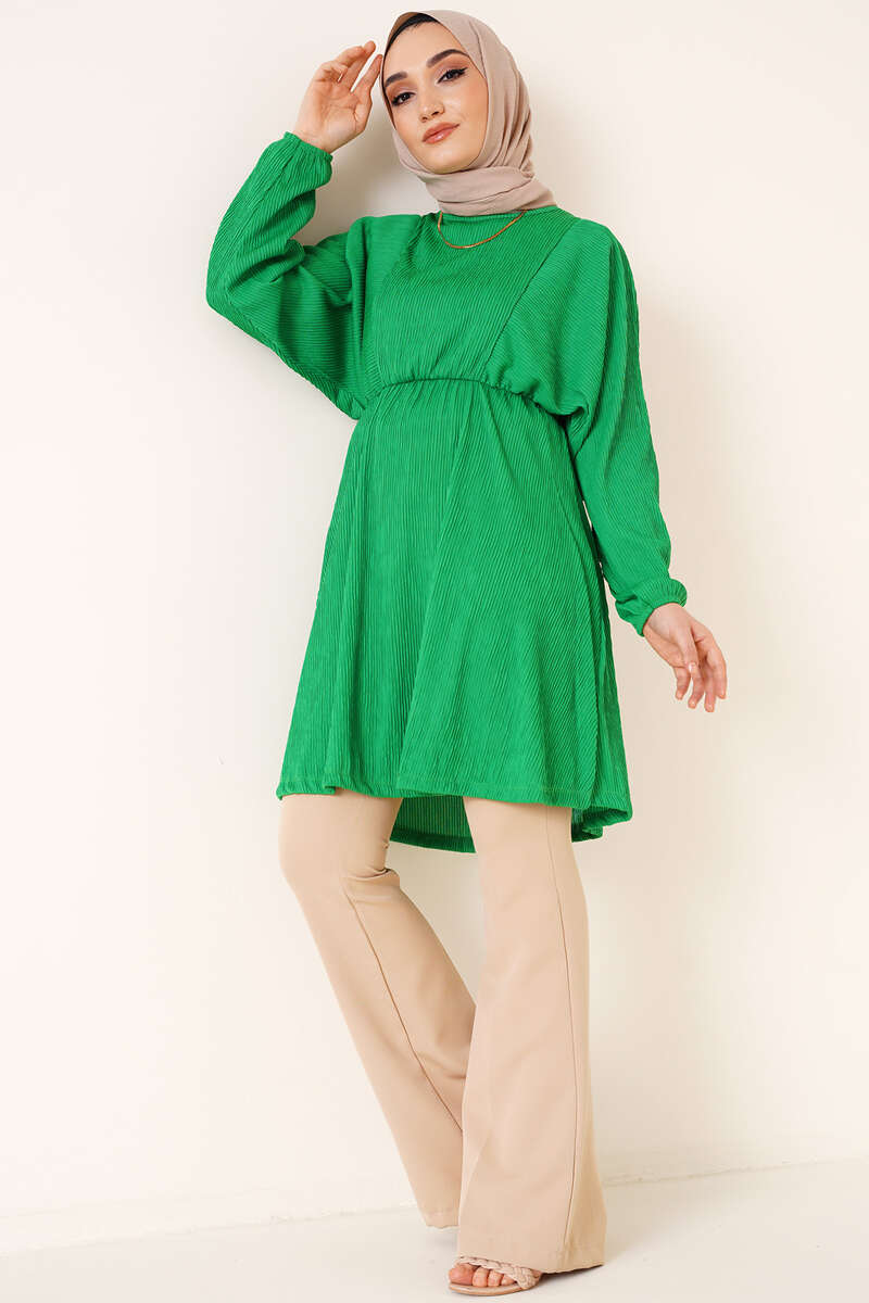 Yeni sezon yarasa kol tuniğimiz bel lastiklidir. Oval yaka olan tuniğimizin bilekleri lastiklidir. Şık kombinlerinizde tamamlayıcı parça olarak kullanacağınız tunik sezonun favorisidir.