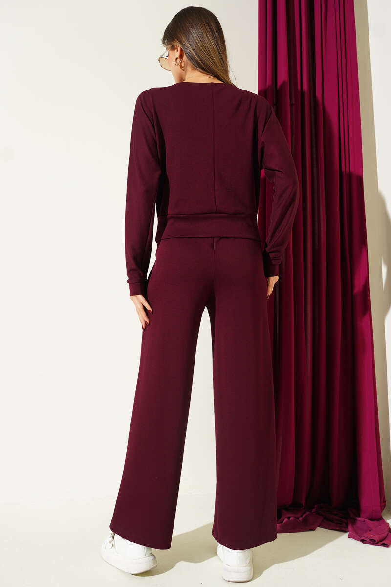 Yarasa Kol Bluzlu Loyşa İkili Takım Kahve